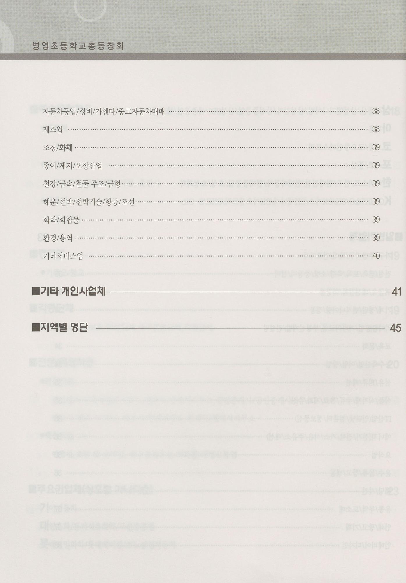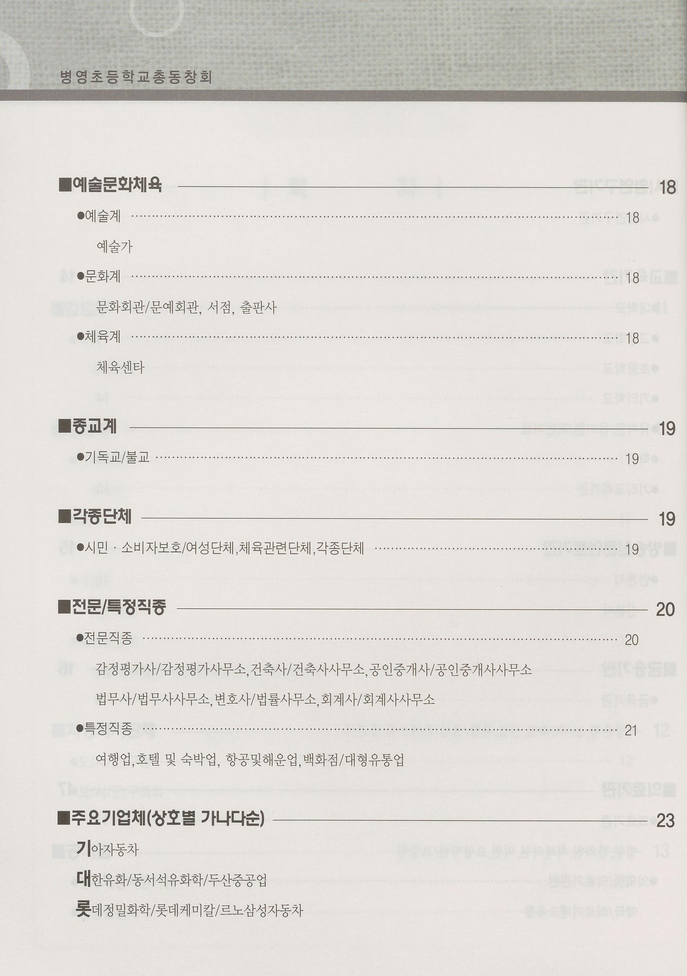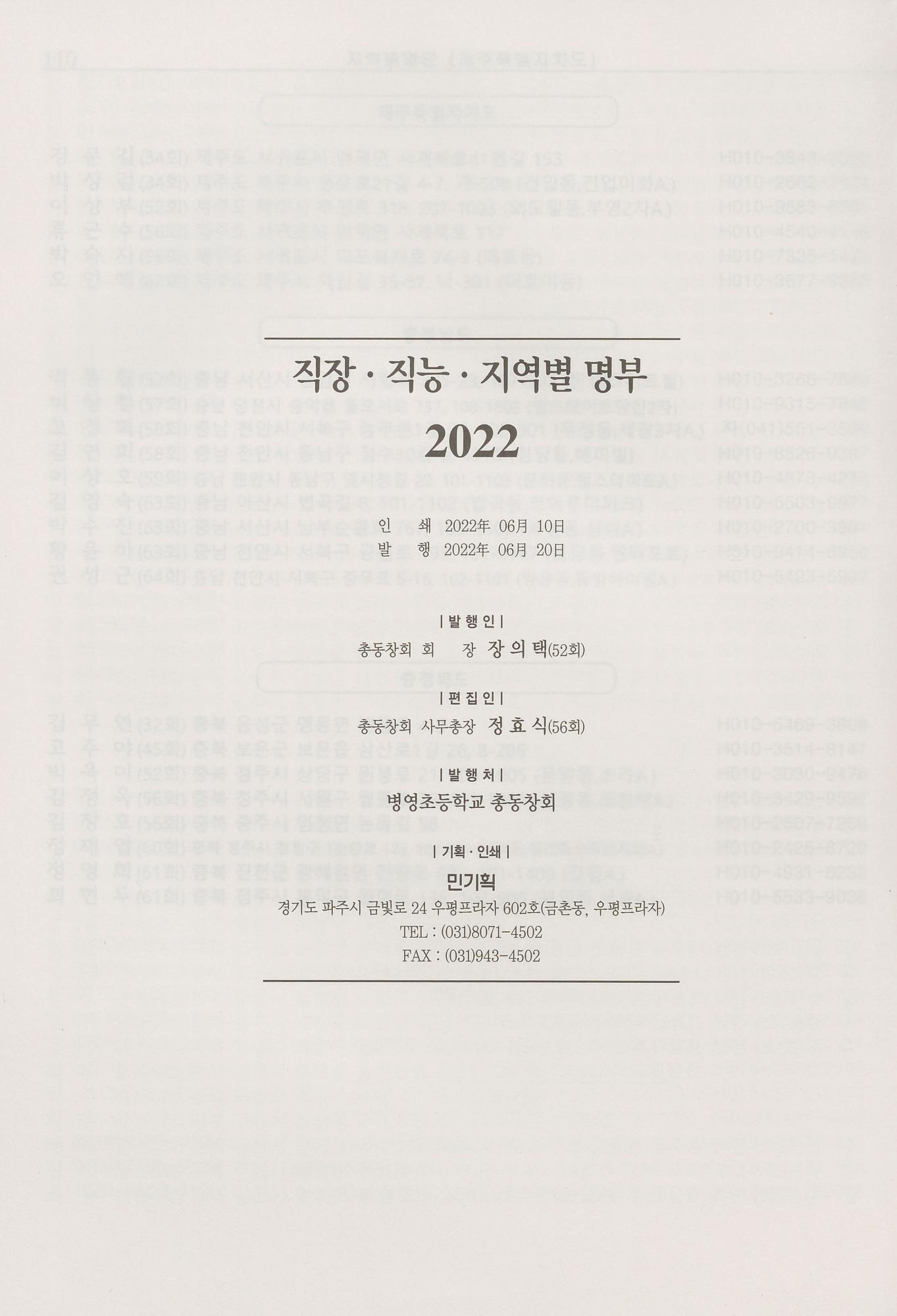 병영초등학교 2022년 직장·직능·지역별 동창회명부