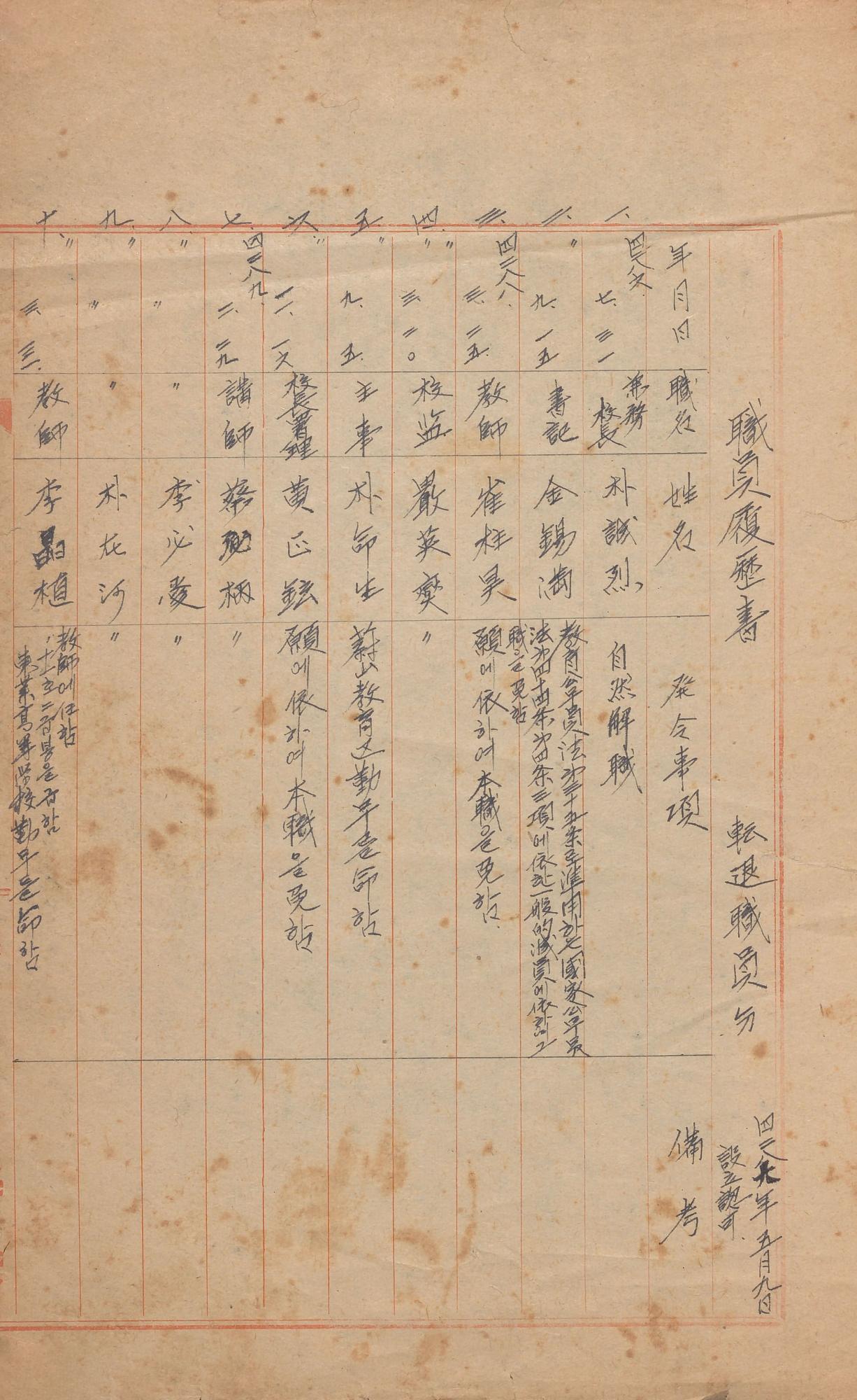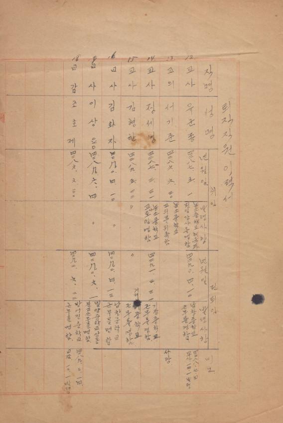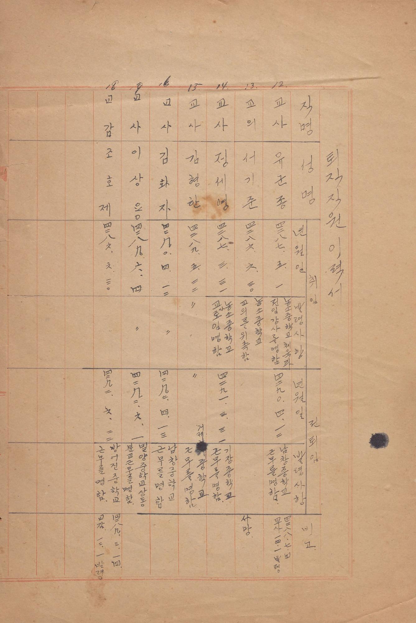 농소중학교 1950년대 이력서_표지 소실로 정확한 연대 불가 '단기4286년(1953년) 05월 09일 설립인가'표기로 1950년대이후 이력서철로 유추됨