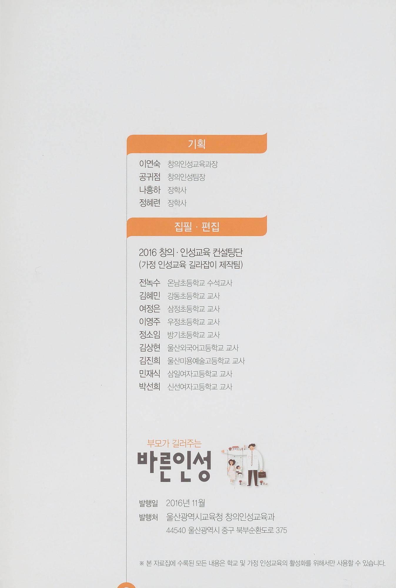 서생초등학교 2016년 부모가 길러주는 바른인성 부모교육자료_울산12덕목 실천과 인성역량 함양을 위한 가정 인성교육 길라잡이