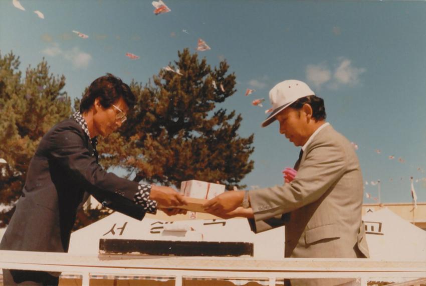 서생국민학교 1979년 대송 분교에 독서상을 설치해 주신 김국남씨에게 감사장 수여하는 사진