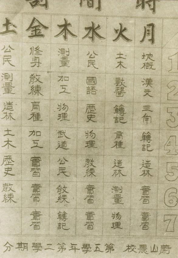 울산공립농업학교 1941년 5학년2학기 시간표