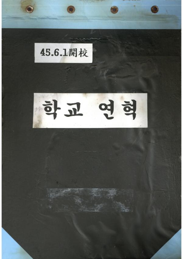 1945년 5월 18일 양정공립국민학교 설립인가(울산군 하상면 효문리 767번지) 부터 2003년 2월까지의 연혁이 수록되어 있다.