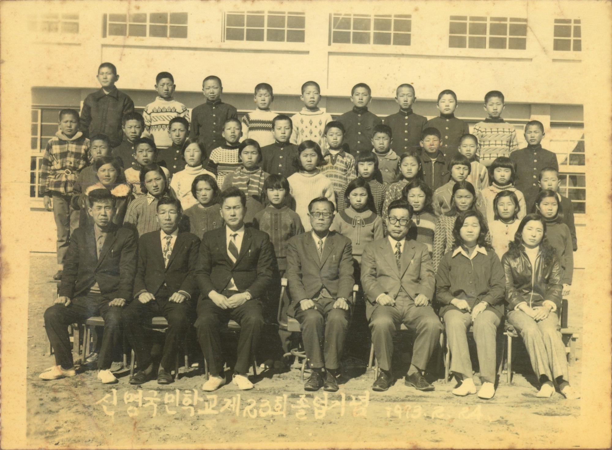 신명국민학교 제23회 졸업기념 사진이다.