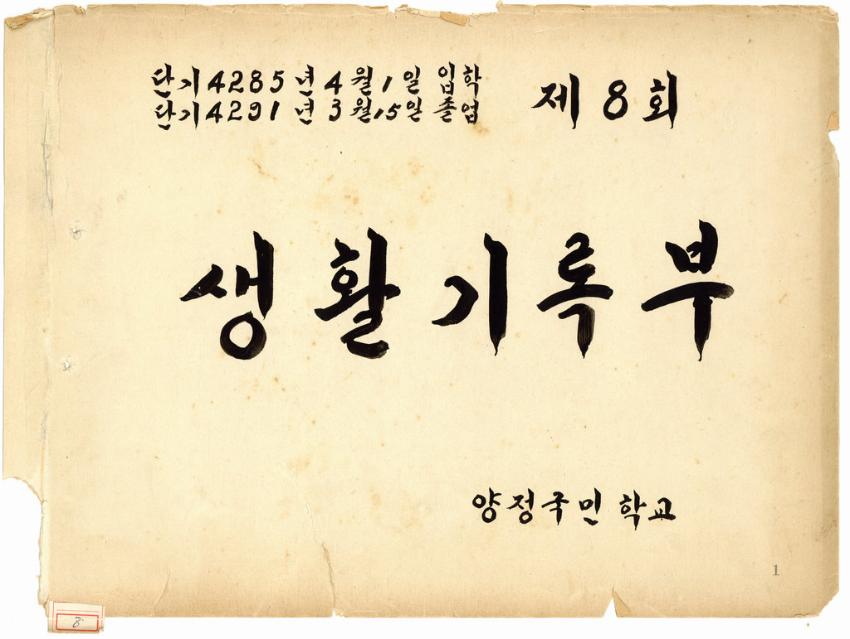 단기7285년 9월1일 입학 단기4291년 3월 15일 졸업한 양정국민학교 제8회 생활기록부이다.