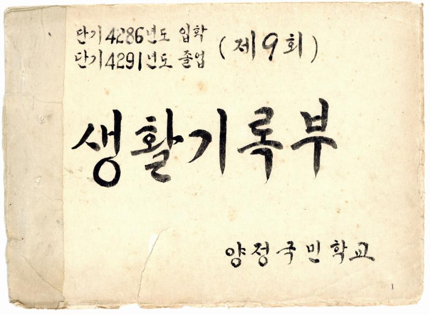 단기7286년 입학 단기4291년 졸업한 양정국민학교 제9회 생활기록부이다.