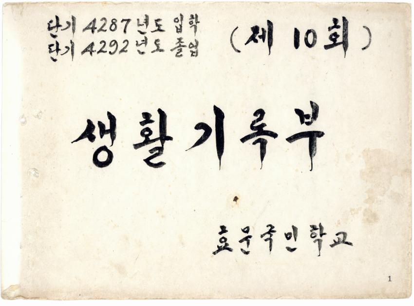단기7287년 입학 단기4292년 졸업한 효문국민학교 제10회 생활기록부이다.