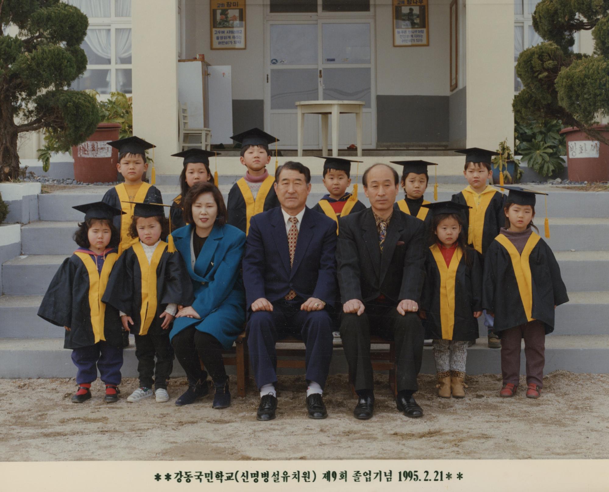 강동국민학교 신명병설유치원 제9회 졸업사진이다.