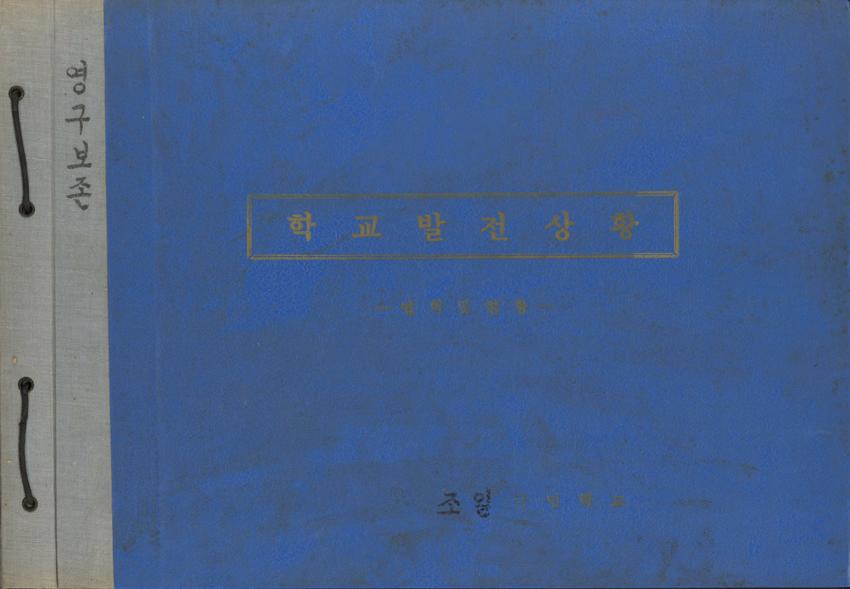 1984년에 작성된 조일국민학교 학교발전에 관한 중요 연혁과 실태를 기록하고 활용요령에 관한 내용이 실려있다.