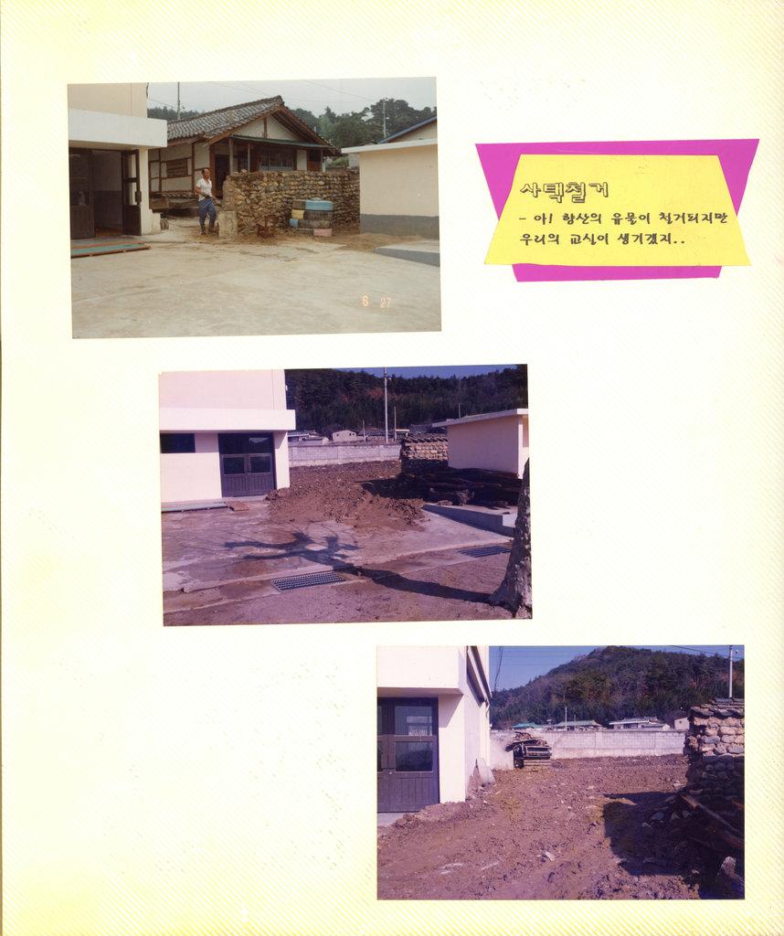 사택철거, 책가방 없는날등 여러 학교행사들을 체험하는 사진들을 모아둔 앨범이다.