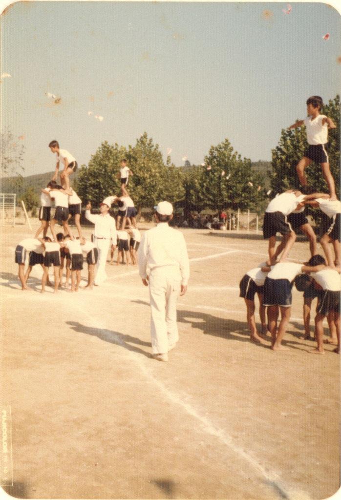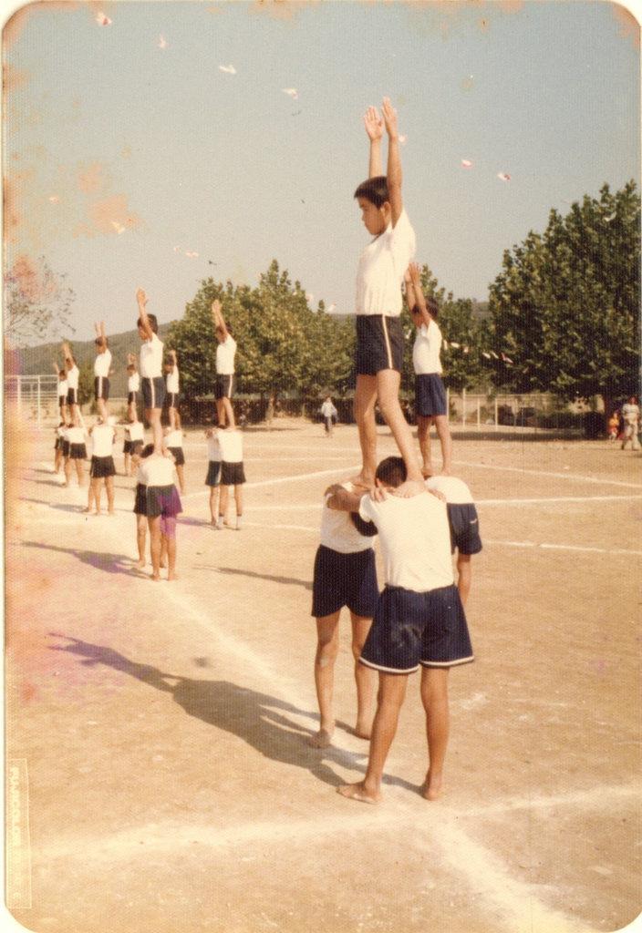 추계운동회 남학생들의 인간탑쌓기 모습이다.