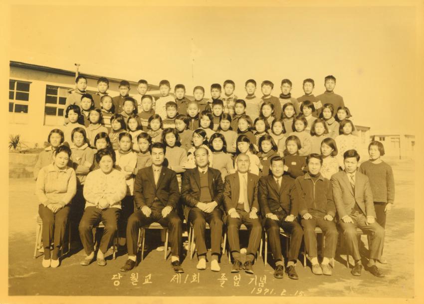 1971년 당월국민학교 제1회 졸업생들과 교직원들의 졸업기념 단체 사진이다.