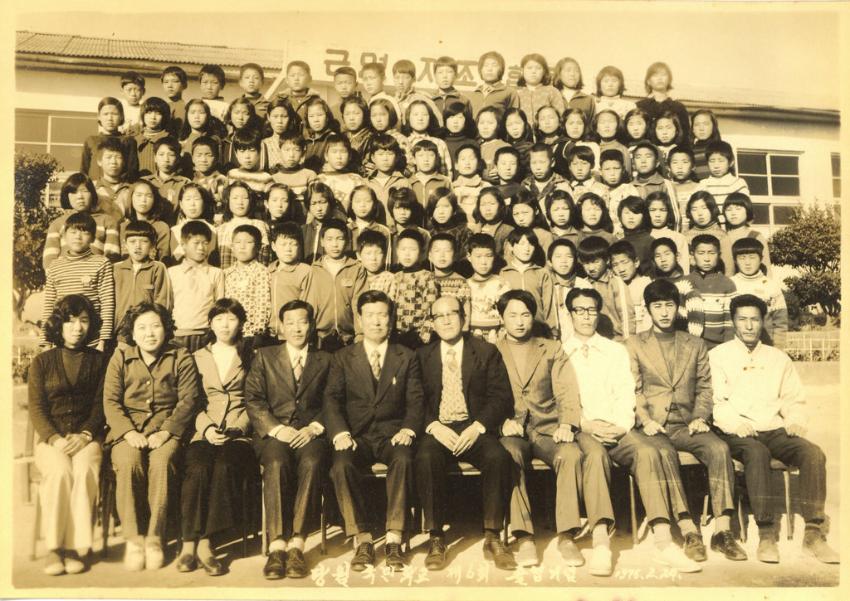 1976년 당월국민학교 제6회 졸업생들과 교직원들의 졸업기념 단체 사진이다.