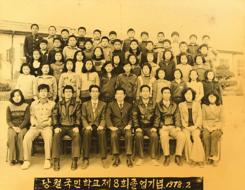 1978년 당월국민학교 제8회 졸업생들과 교직원들의 졸업기념 단체 사진이다.