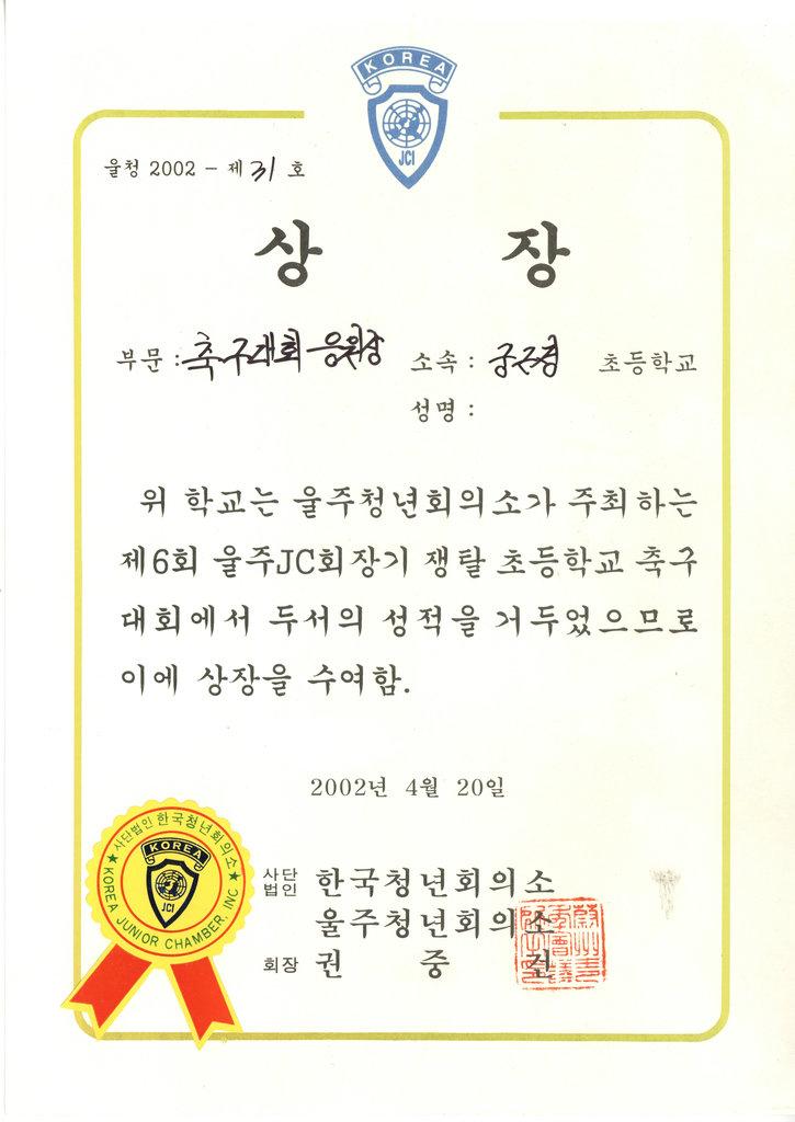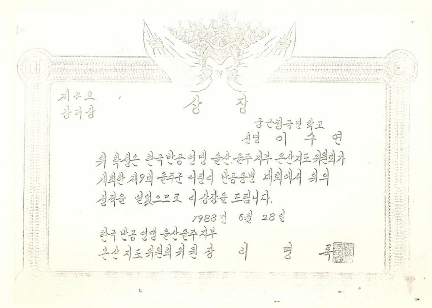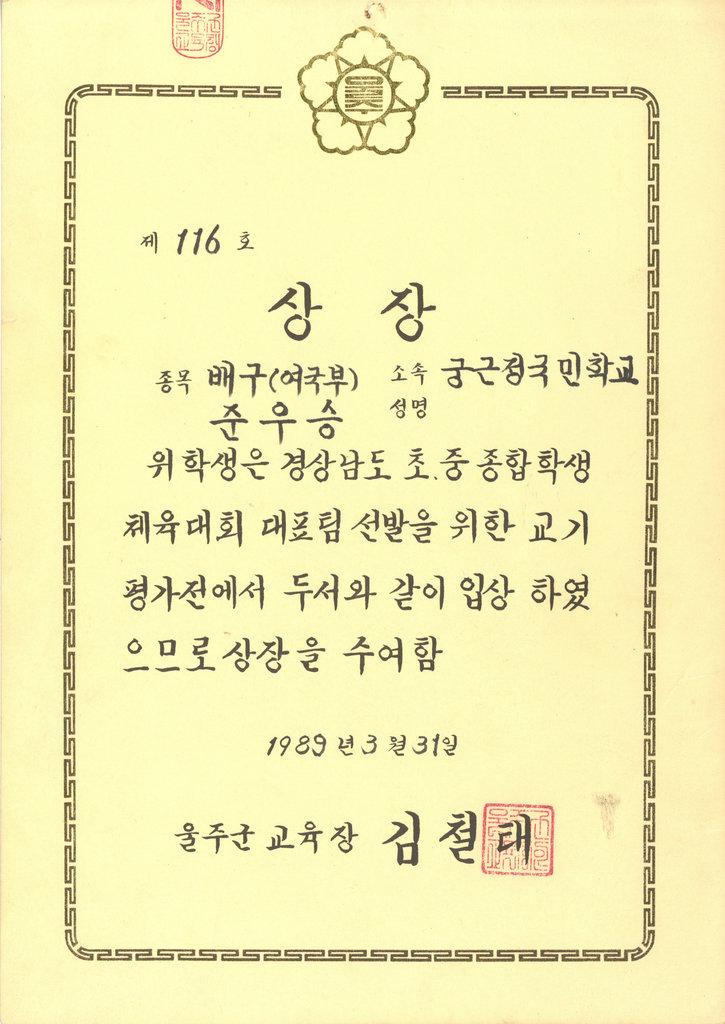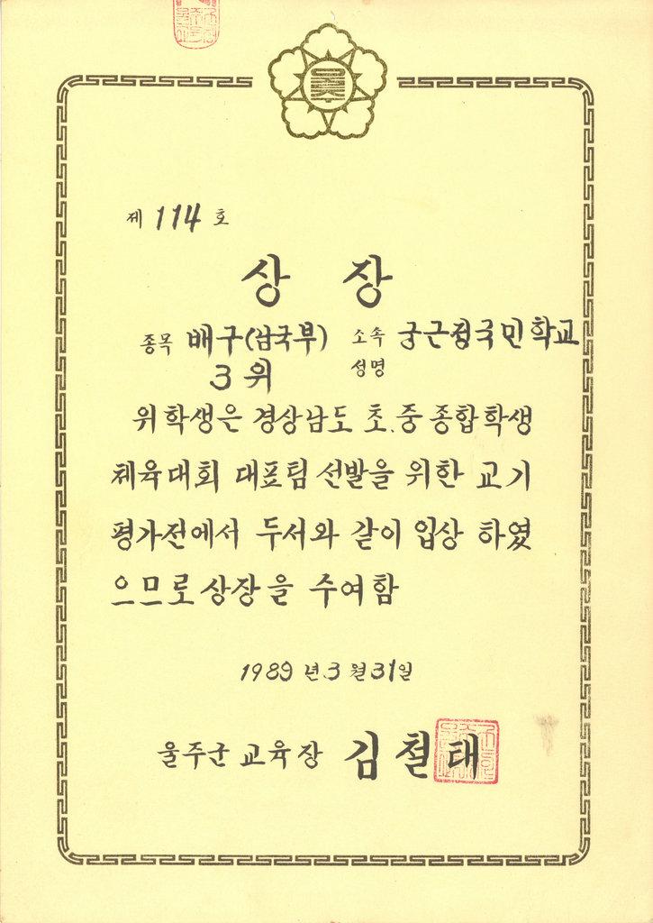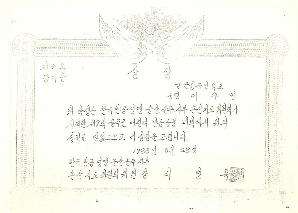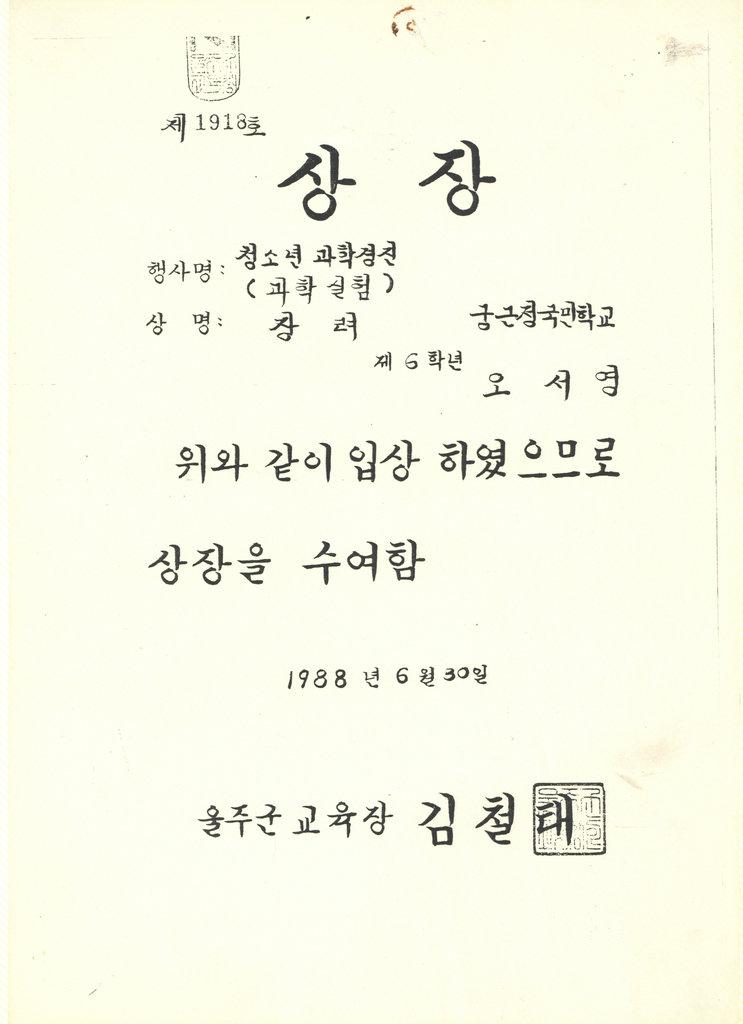 1986년부터 2006년까지 받은 상장을 모아둔 앨범이다. 이이벌대동제에서 준우승을 한 상장부터, 청소년과학경진대회에서 우수장을 받은 상장등이 있다.