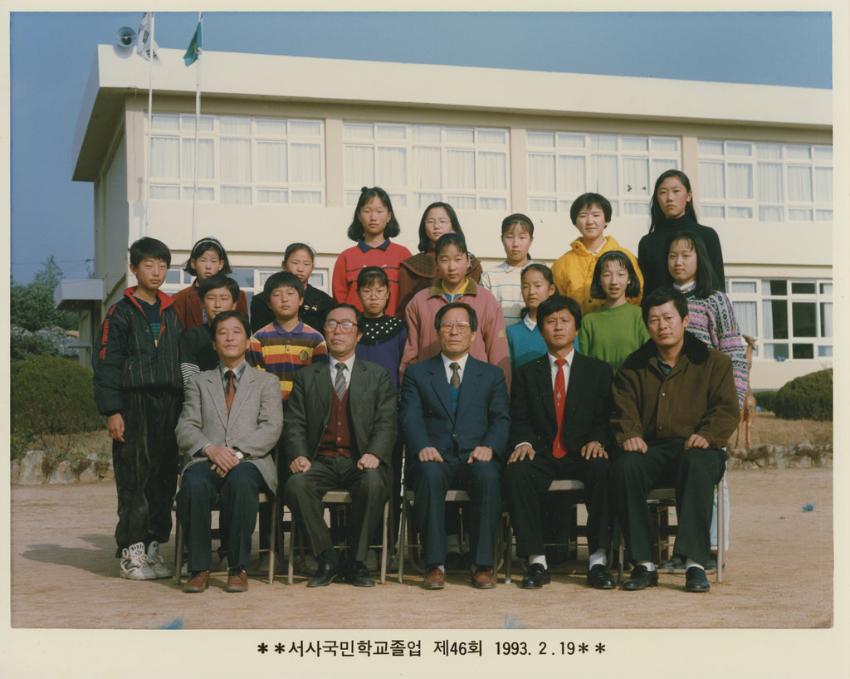 척과국민학교 서사분교 제46회 졸업 기념 사진이다.