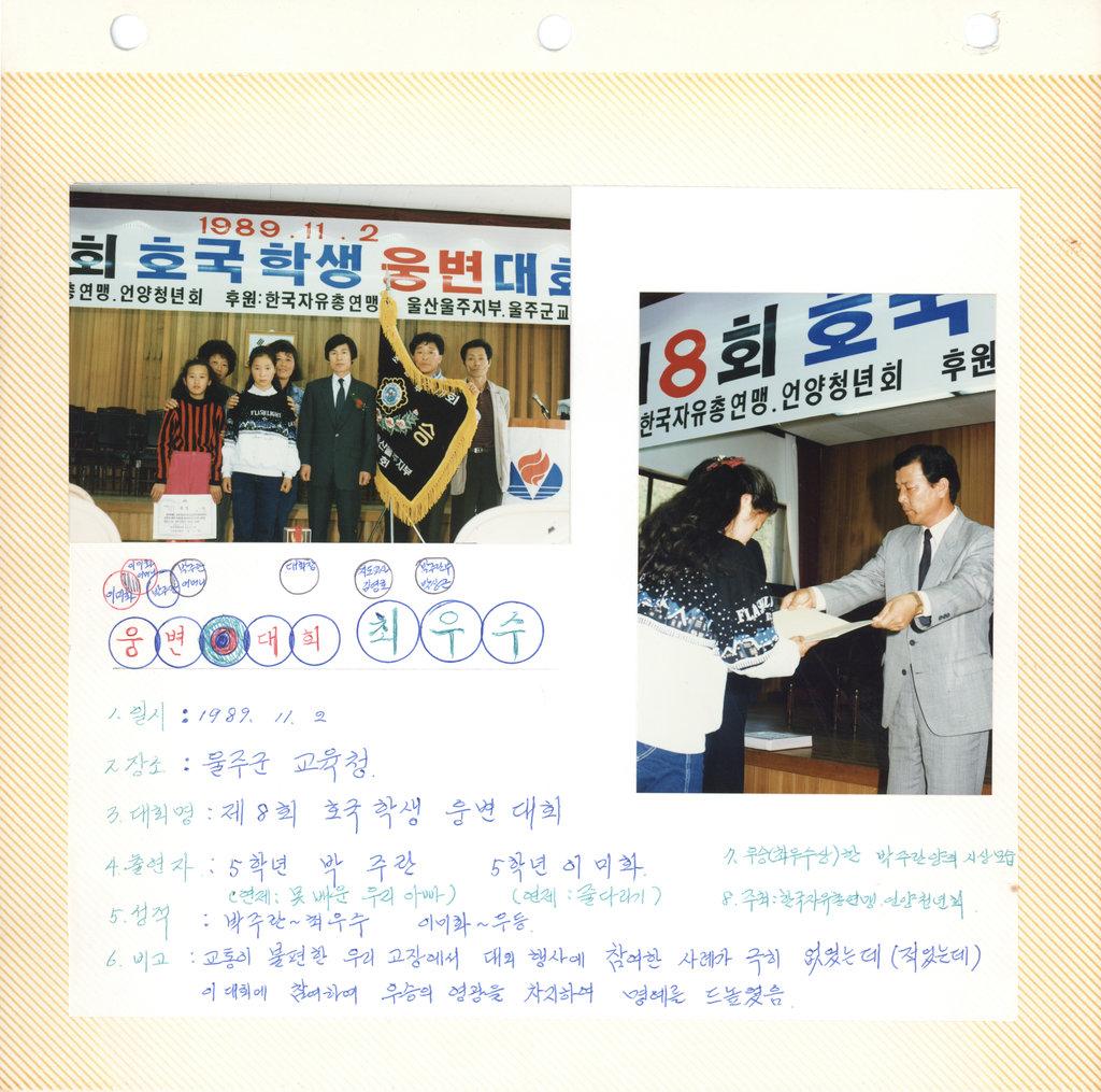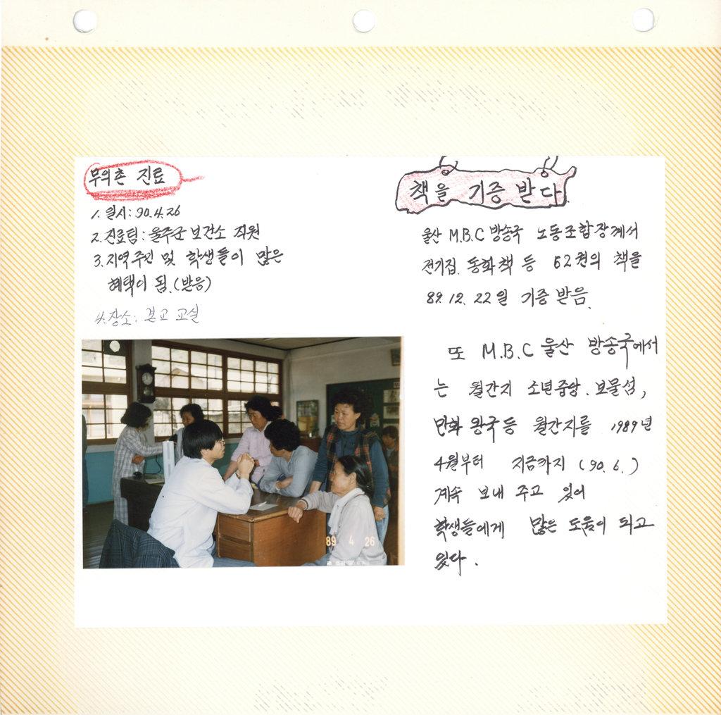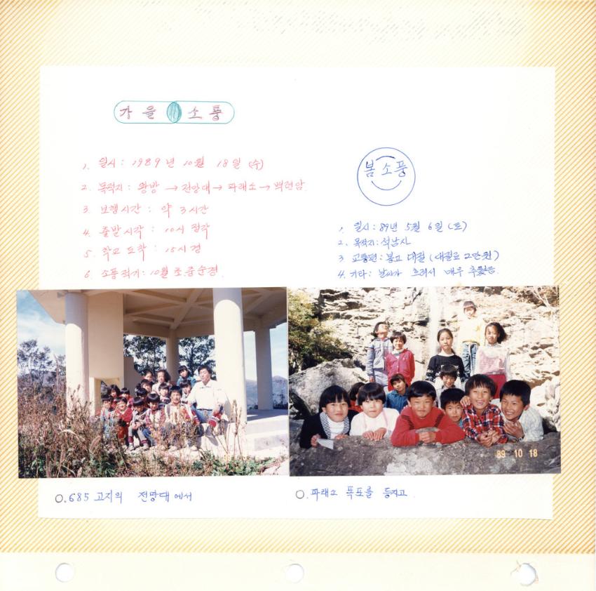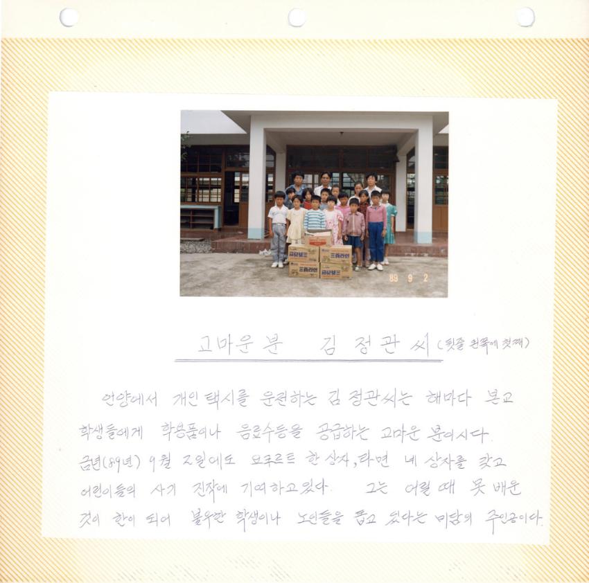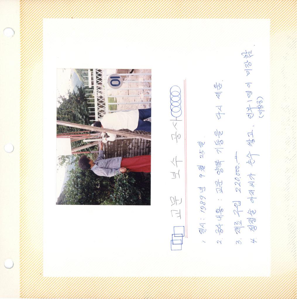 길천초등학교에서 실시한 학예회, 웅변대회입상, 가을소풍등 학교행사사진과 복사기 구입, 목욕탕개조등 학교에 필요한 부분들을 수리한 내역 등등 학교 경영에 필요한 사진들과 내용들이 들어있는 앨범이다.