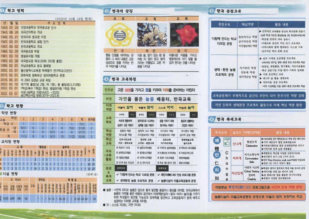 학교 안내도,학교 현황, 학교의 상징등이 요약된 학교요람 팜플렛이다.