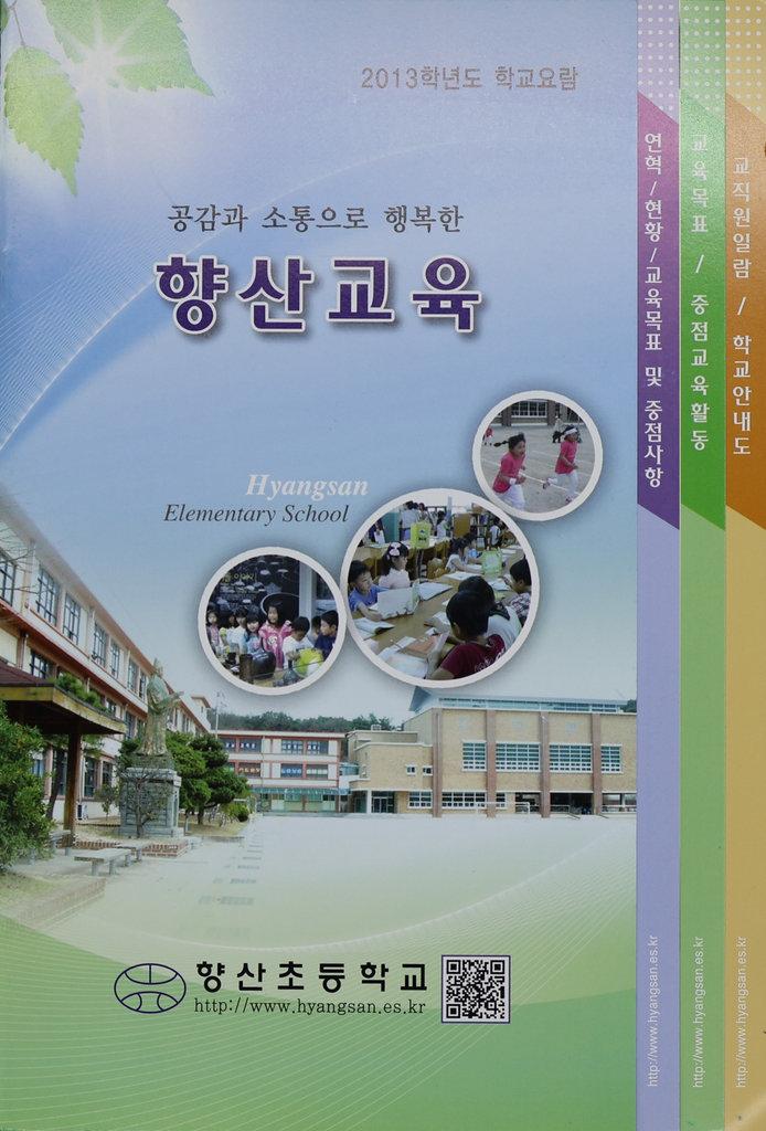 2013학년도의 향산초등학교 안내 팜플렛으로 연혁,현황,교육목표 및 중점사항과 교육목표, 중점교육활동 그리고 교직원일람, 학교안내도 등의 내용이 실려있다.