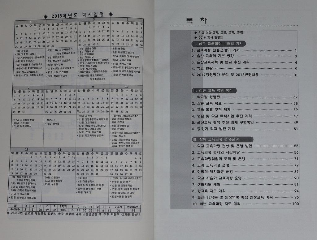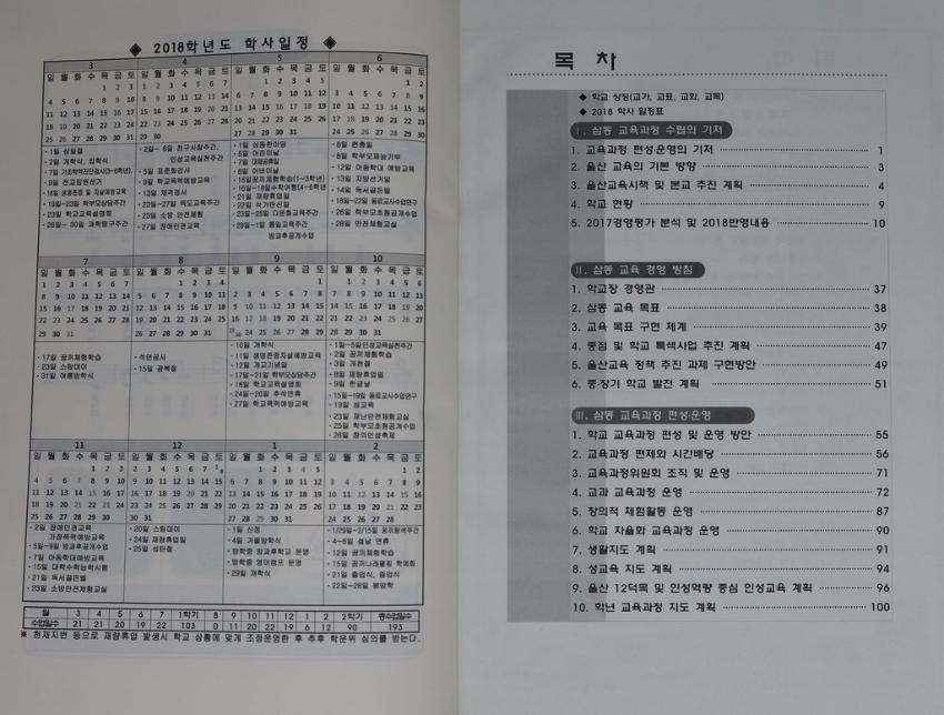 2018년 삼동초등학교 교육계획서이다. 삼동 교육의 바탕, 삼동 교육의 지향, 삼동 교육의 편성등 삼동 교육계획이 수록되어 있다.