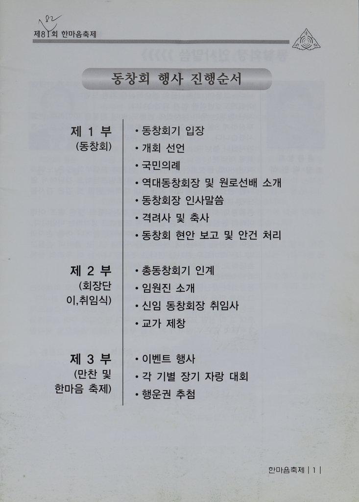 삼동초등학교제81회 총동창회 모임을 위한 동창회 자료집이다.