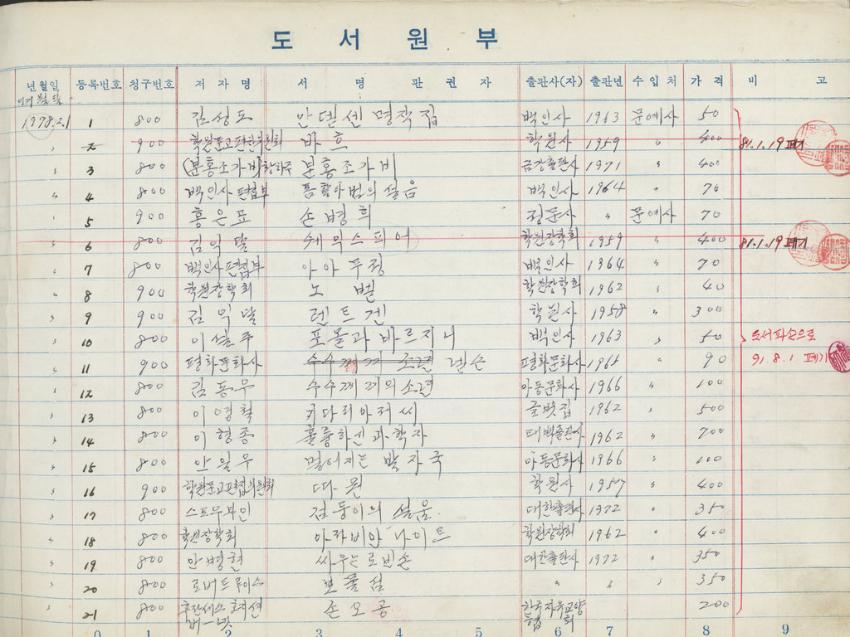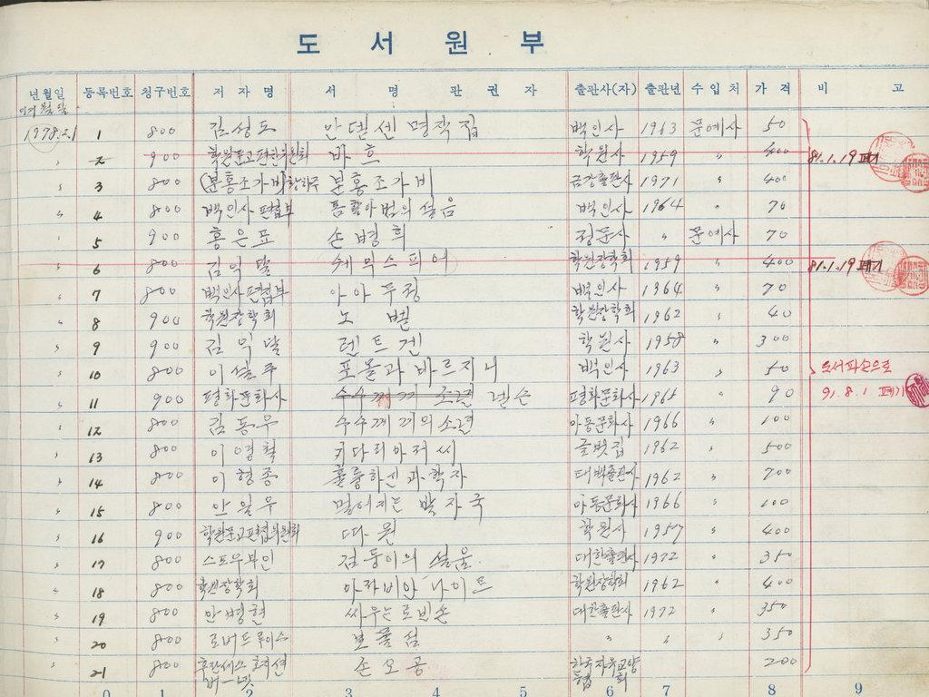 1978년 이후 궁근정국민학교의 도서관리 문서철이다.