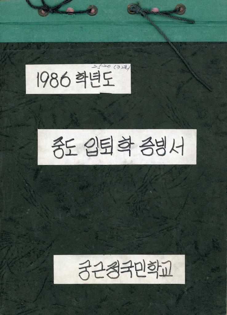 1986-1987년에 궁근정국민학교에 중도 입퇴학한 학생들의 전입신고서, 입퇴학원서등이 기입되어있는 문서들을 모아둔 증빙서류들이다.