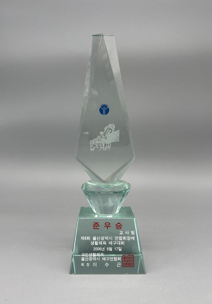 상북초등학교에 보관되어 있는 제8회 울산광역시 연합회장배 생활체육 배구대회 교사팀 준우승 트로피다.