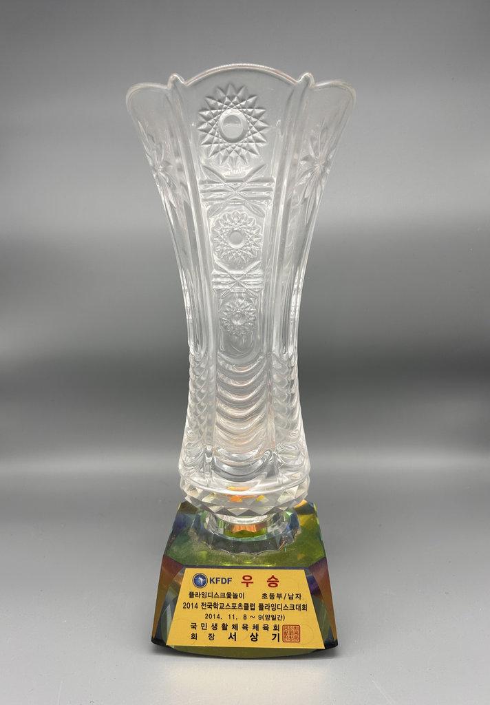 상북초등학교에 보관되어 있는 2014 전국 학교스포츠클럽 플라잉디스크대회 플라잉디스크 윷놀이 초등부 남자 우승 트로피다.