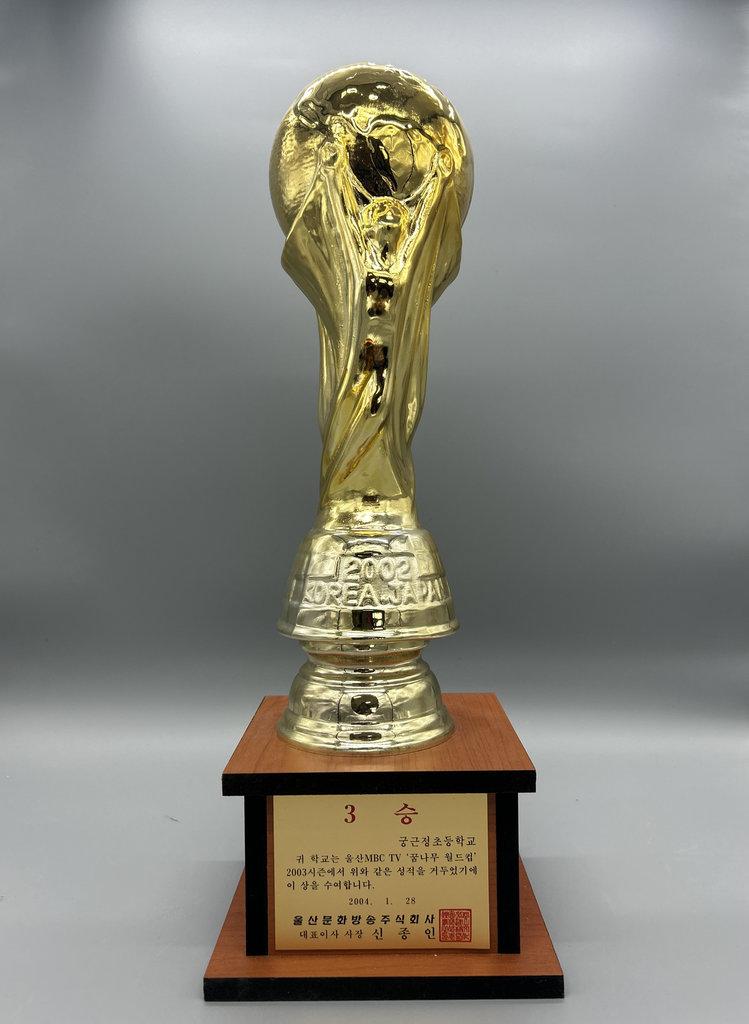울산 문화방송 주식회사가 주최한 울산 MBC TV '꿈나무 월드컵' 2003 시즌에서 궁근정초등학교가 3승을 하여 받은 트로피다.