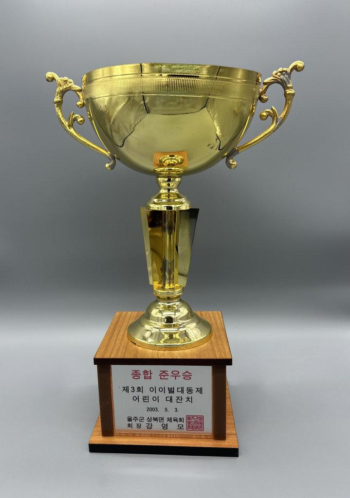 울주군 상북면 체육회가 주최한 제3회 이이벌 대동제 어린이 대잔치에서 종합 준우승을 하여 받은 트로피다.