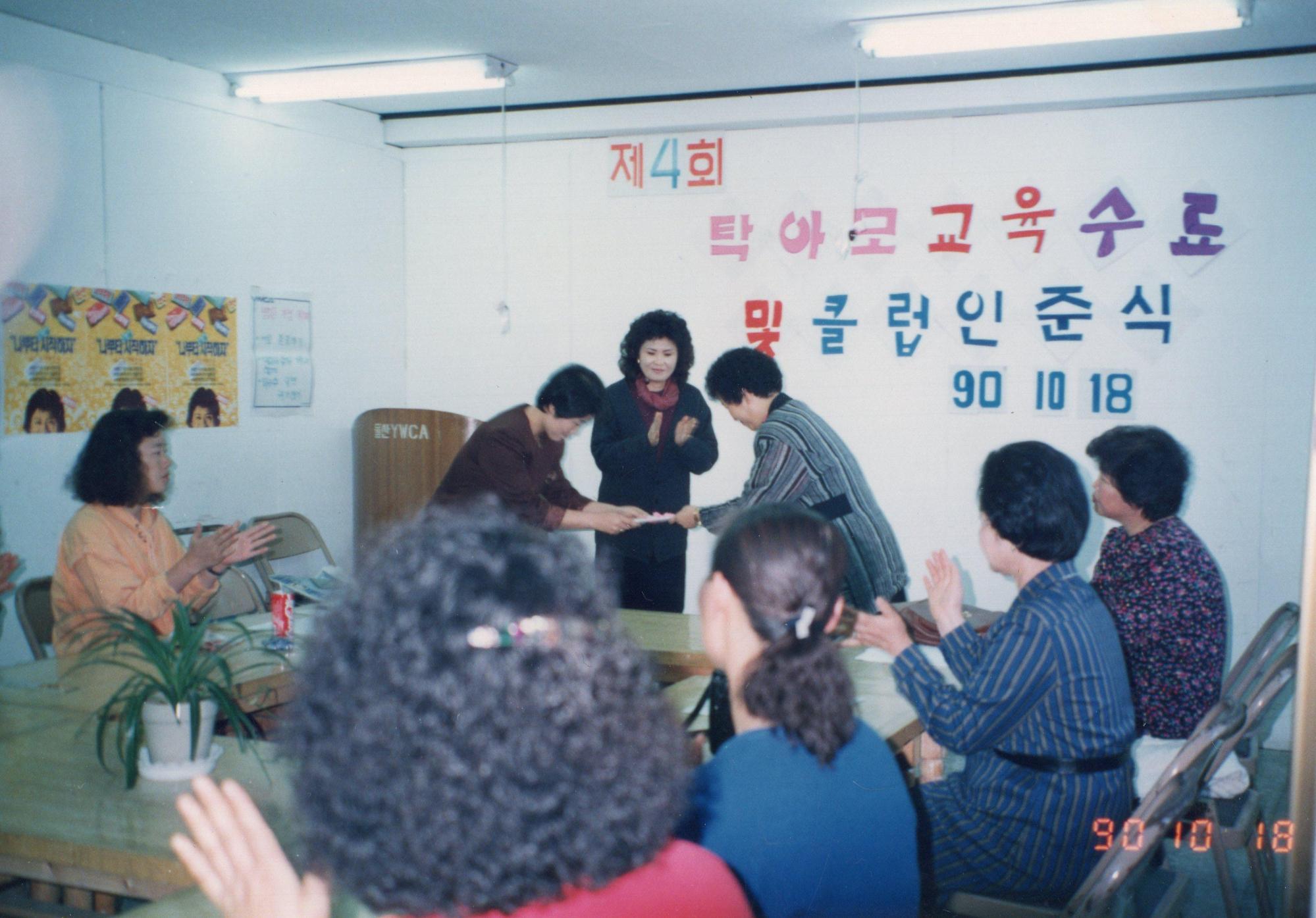 1990년 10월 18일 YWCA 회관에서 제4회 탁아모 교육 수료식 및 클럽 인준식을 진행하였다.