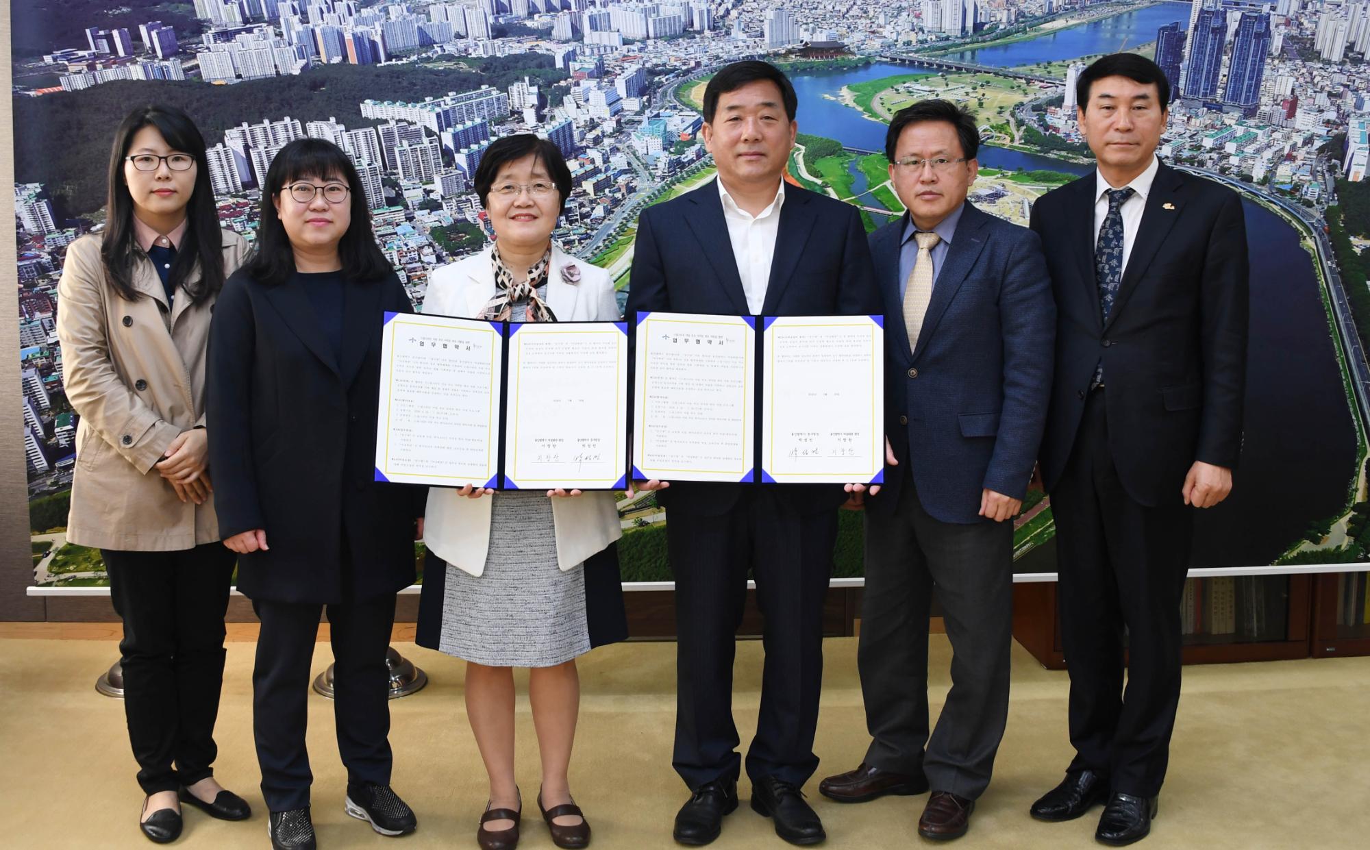 2018년 3월 29일 여성회관에서 생산한 드림스타트 대상 아동 부모 자격증 취득 지원을 위한 업무협약 사진이다. 2018년 3월 29일 드림스타트 대상 아동 부모 자격증 취득 지원을 위한 업무협약식 모습이다. 울산광역시 박성민 중구청장과 여성회관 관장 지창환이 각각 싸인한 업무협약서를 들고 사진을 찍었다.