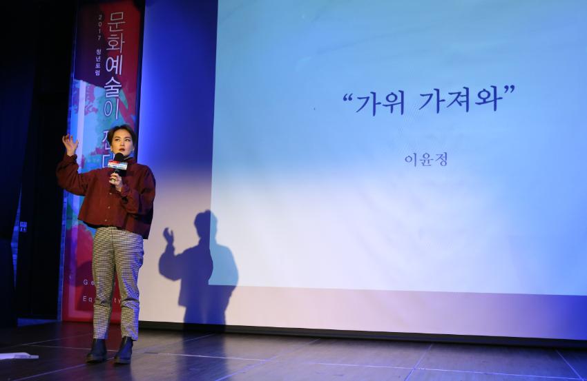 2017 양성평등문화 환경조성사업의 일환으로 진행된 양성평등문화 환경조성 청년포럼 Ⅲ- "2017 청년포럼 문화예술이 젠더를 묻다 시즌 3" 현장 사진.