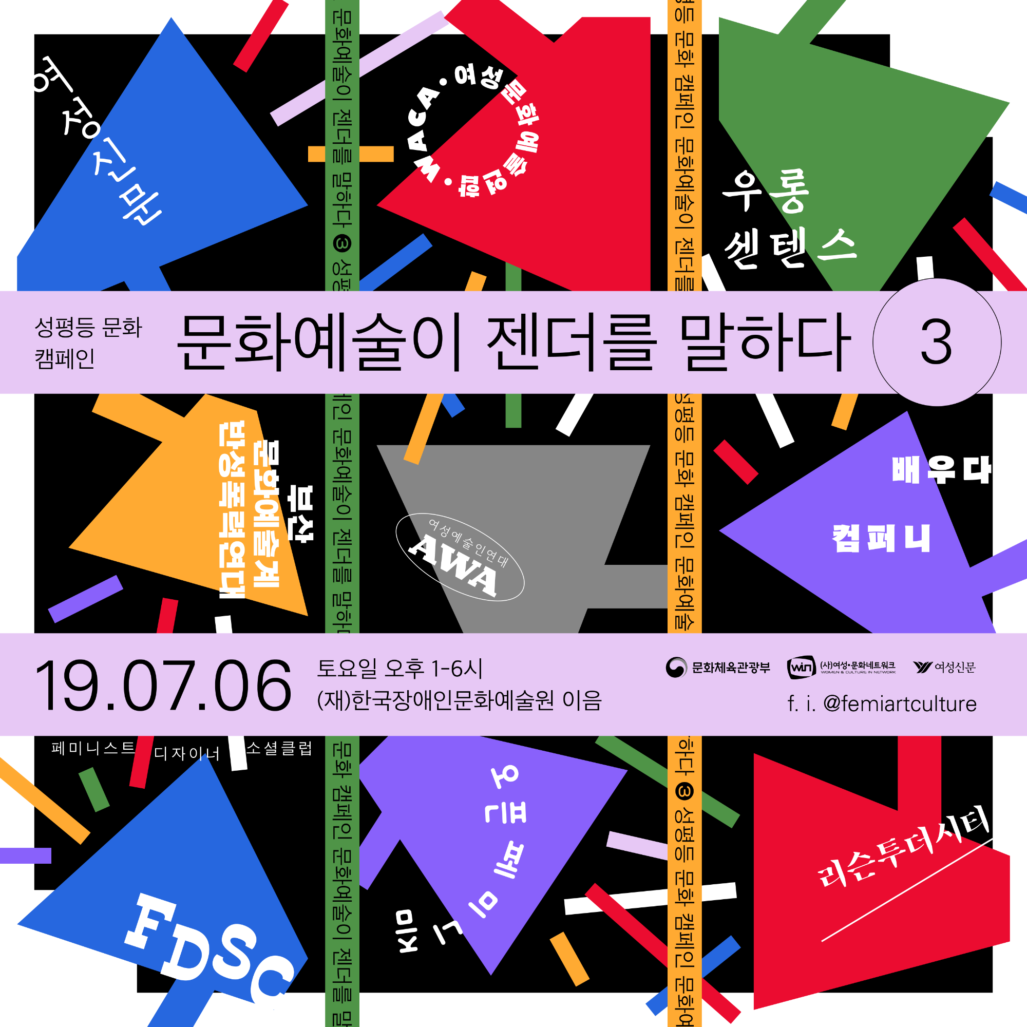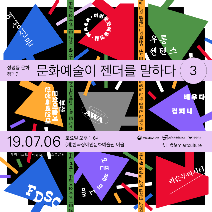 2019년 7월 6일 토요일 진행된 "문화예술이 젠더를 말하다 3" 포스터 및 웹 배너.