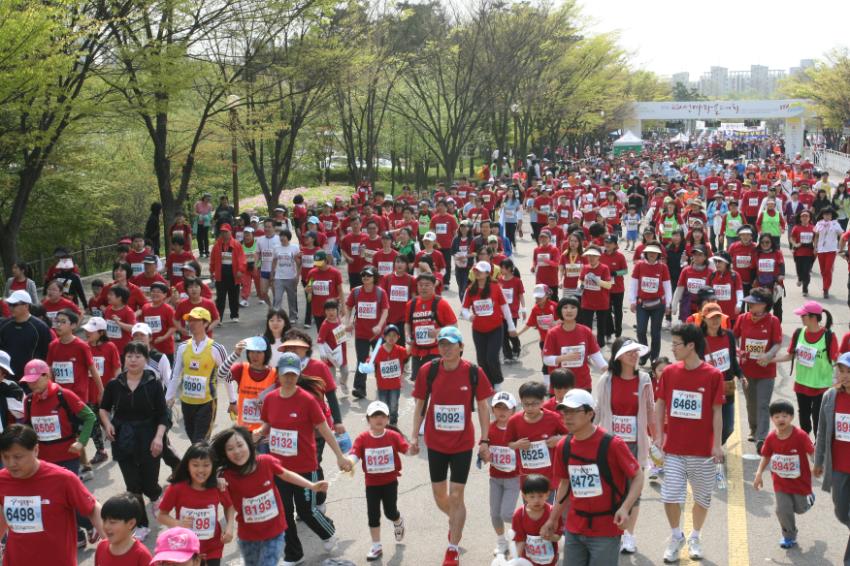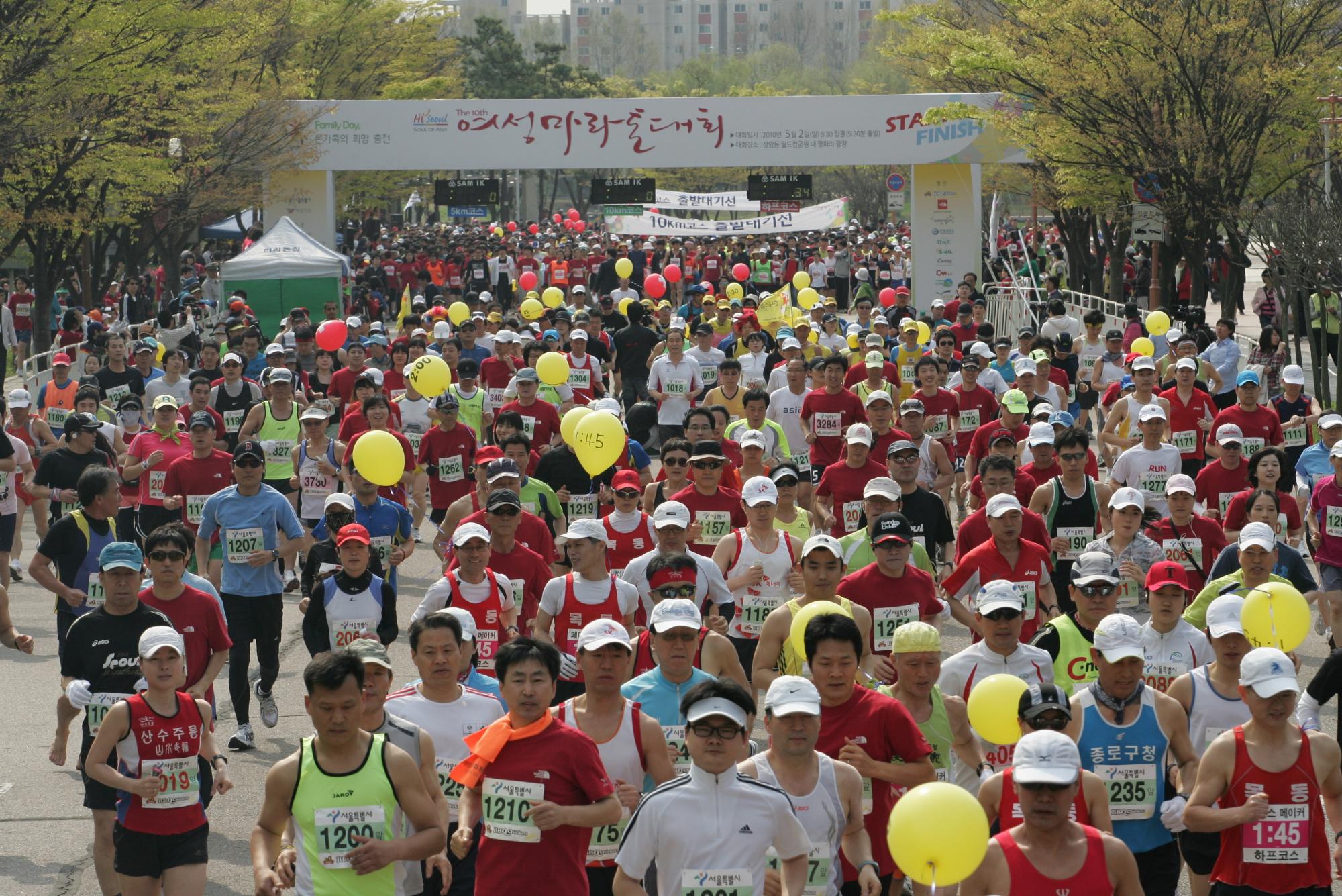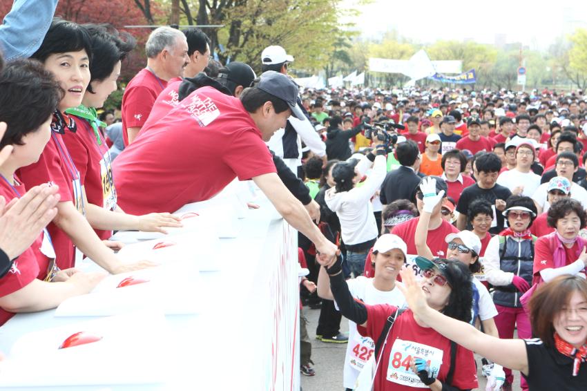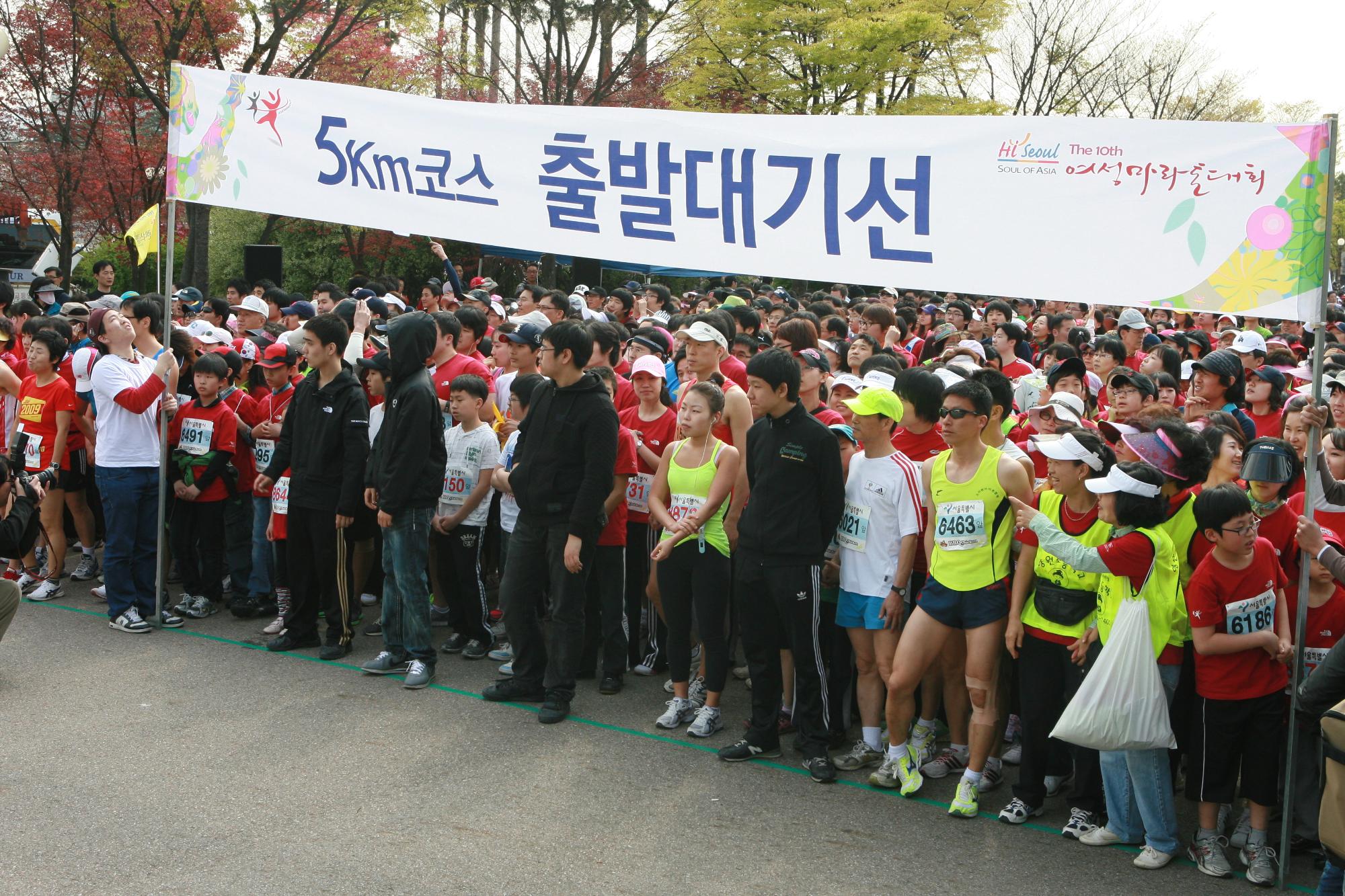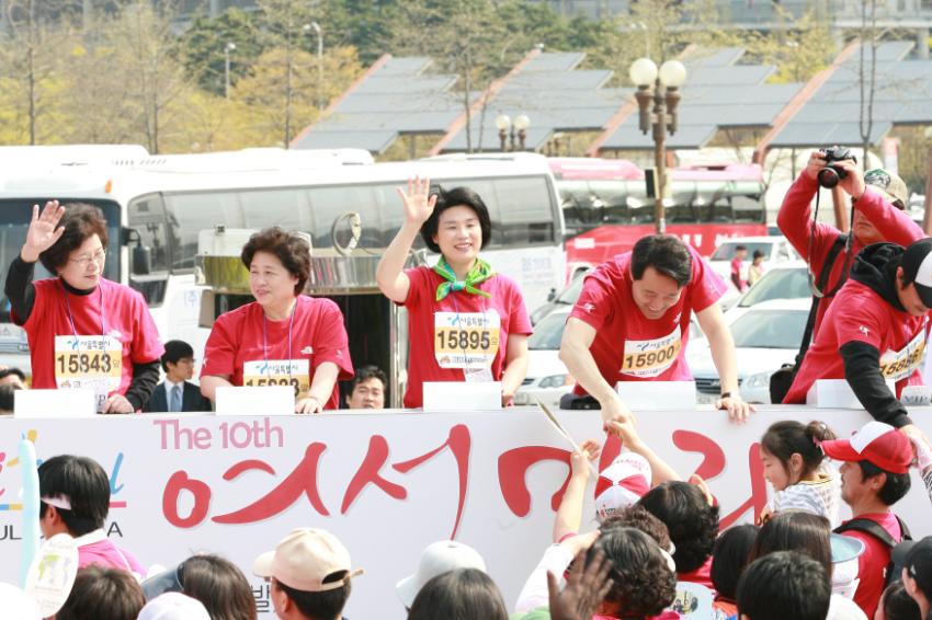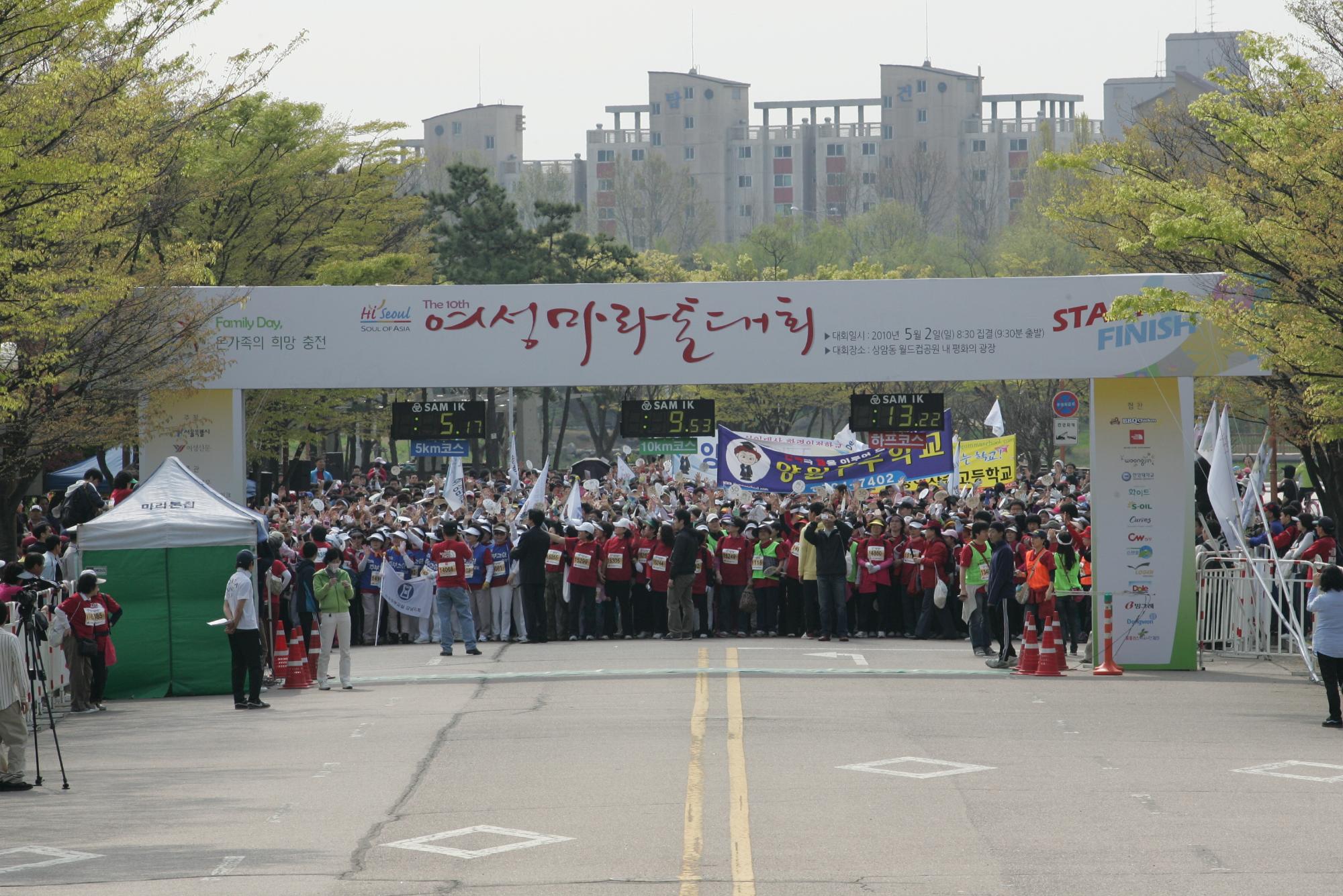 2010년 5월 2일 서울 상암동 월드컵공원 내 평화의 광장에서 개최된 "제10회 여성마라톤대회" 마라톤 현장 사진.