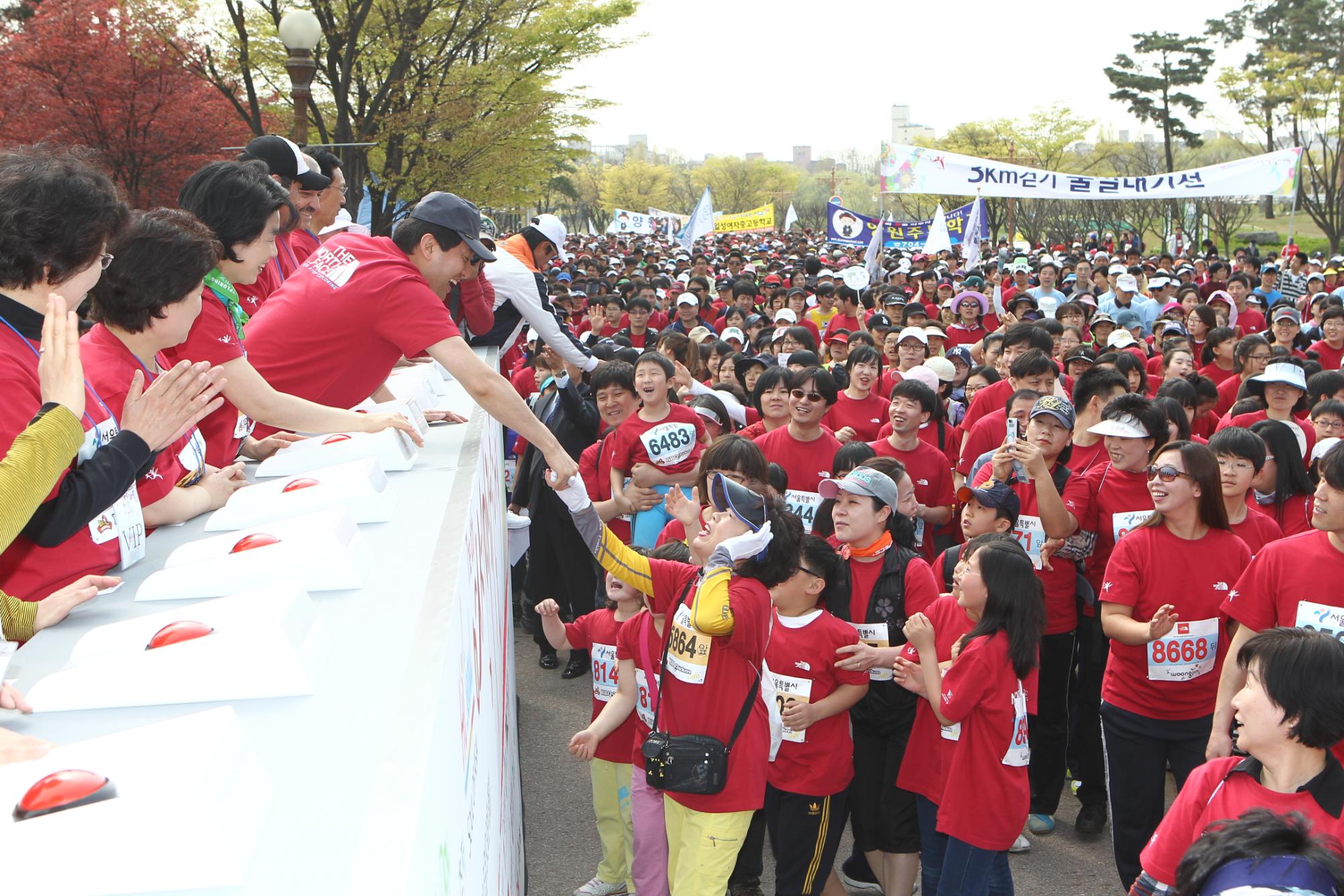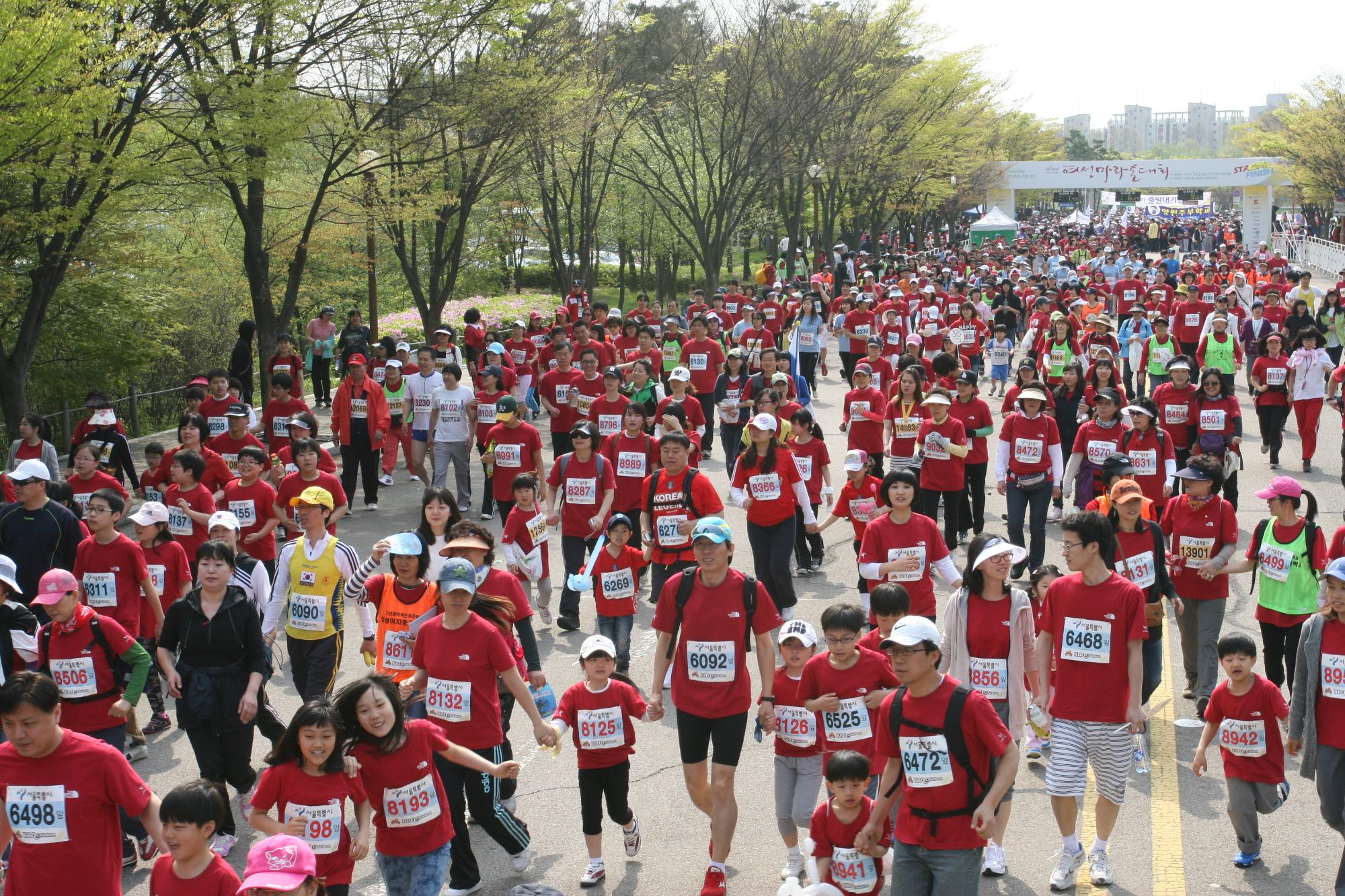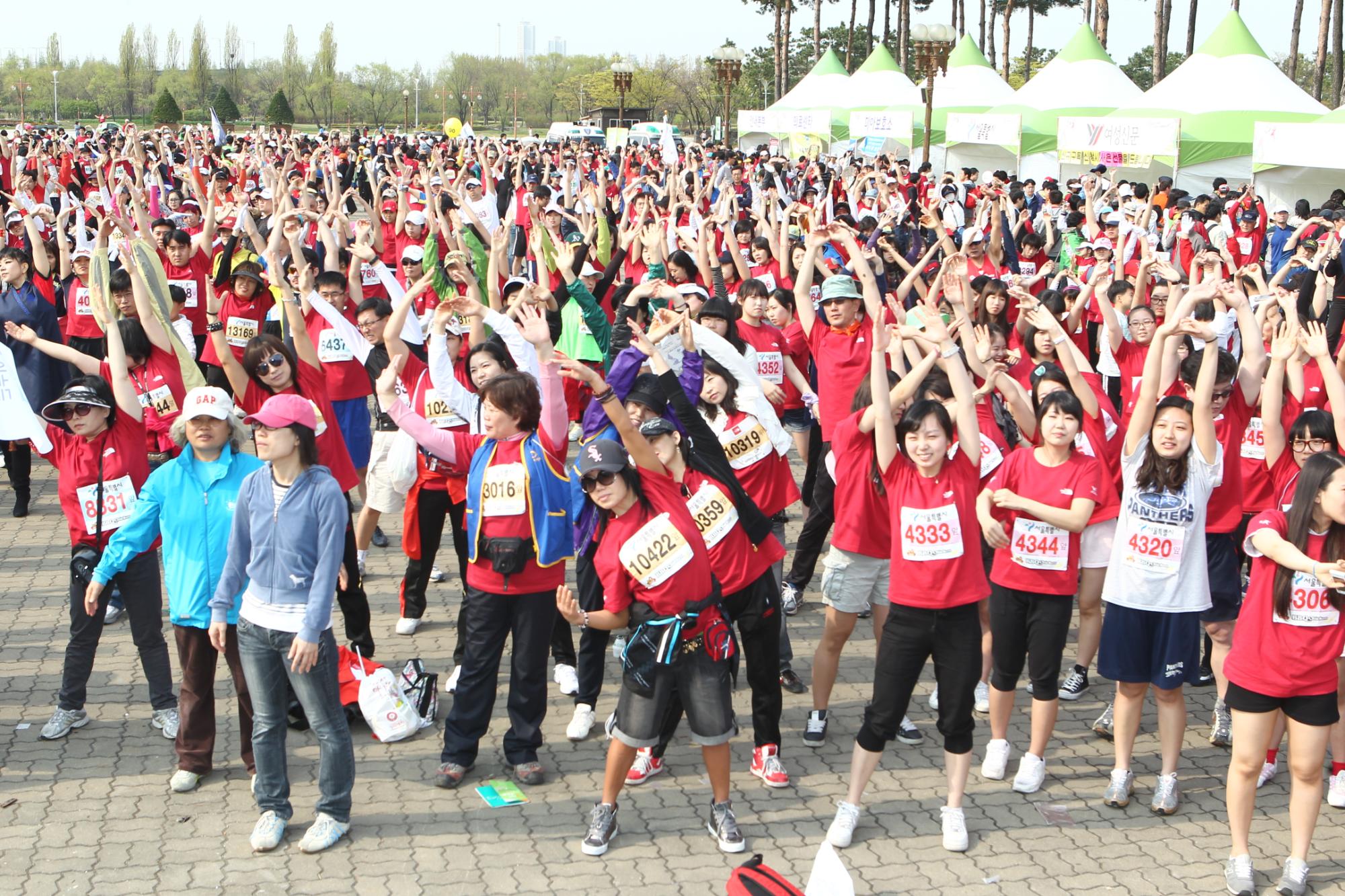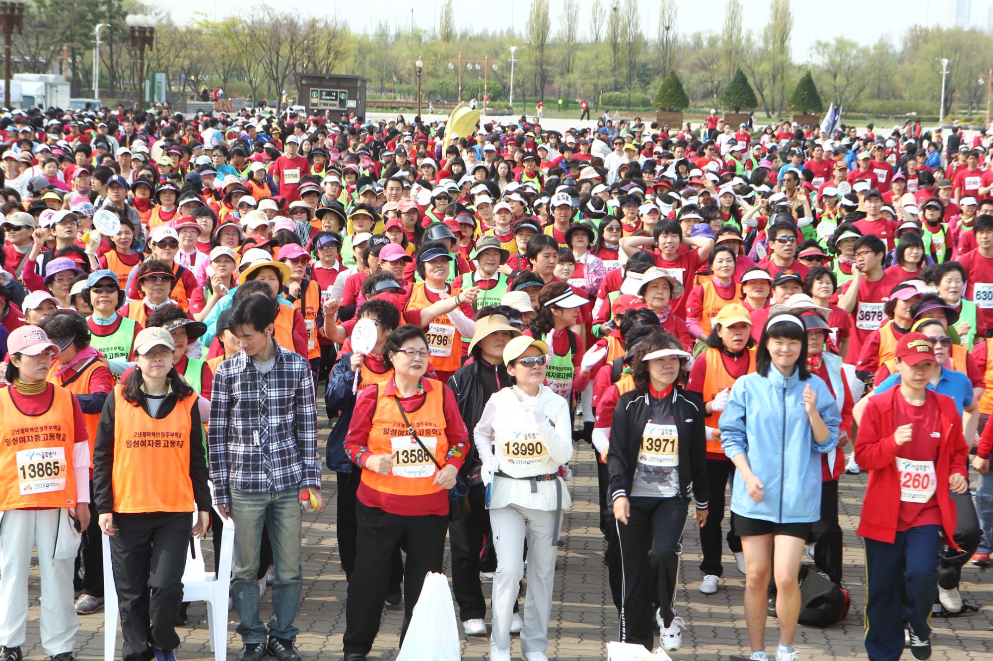 2010년 5월 2일 서울 상암동 월드컵공원 내 평화의 광장에서 개최된 "제10회 여성마라톤대회" 마라톤 현장 사진.