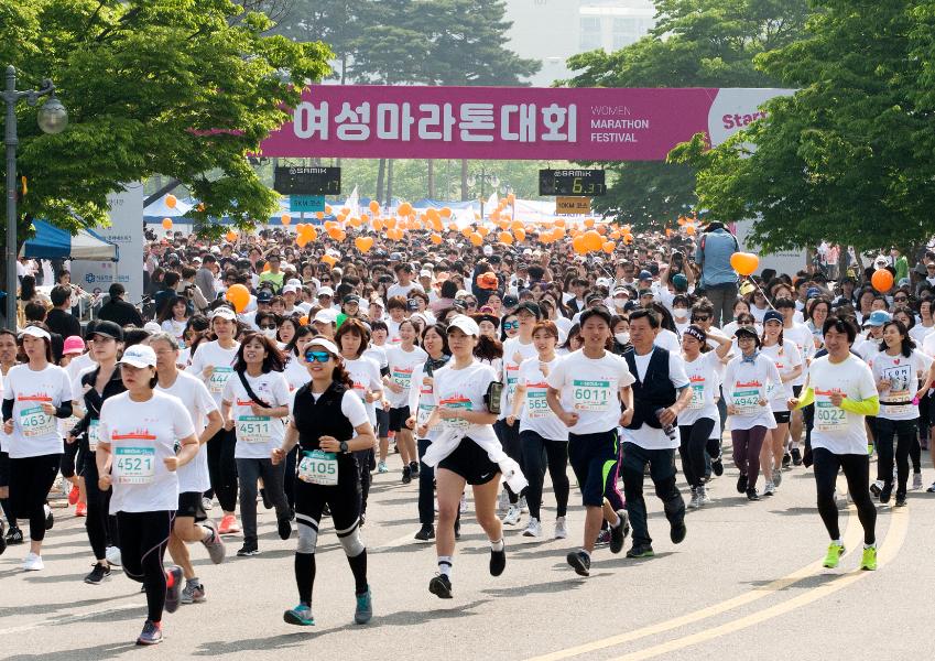 2019년 5월 4일 토요일 진행된 제19회 여성마라톤대회 출발 및 주로 사진.