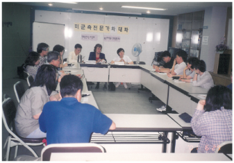 2001년 6월 29일, 평화여성회 사무실에서 2001 MD저지와 평화실현공대위 주관으로 개최된 미 군축전문가 랜달 캐롤라인 포스버그 간담회 현장 사진
