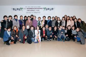 2015년 5월, 세계 각국의 30여 명의 여성평화 활동가들이 한반도의 DMZ를 횡단한 WomenCrossDMZ 행사를 사진기록으로 남기기 위해 한국측 WCD 실행위가 중심이 되어 서울 명동성당 1898 갤러리에서 2015년 12월 3일부터 12월 8일까지 개최한 사진전에서 참석자들이 기념사진을 찍고 있다.