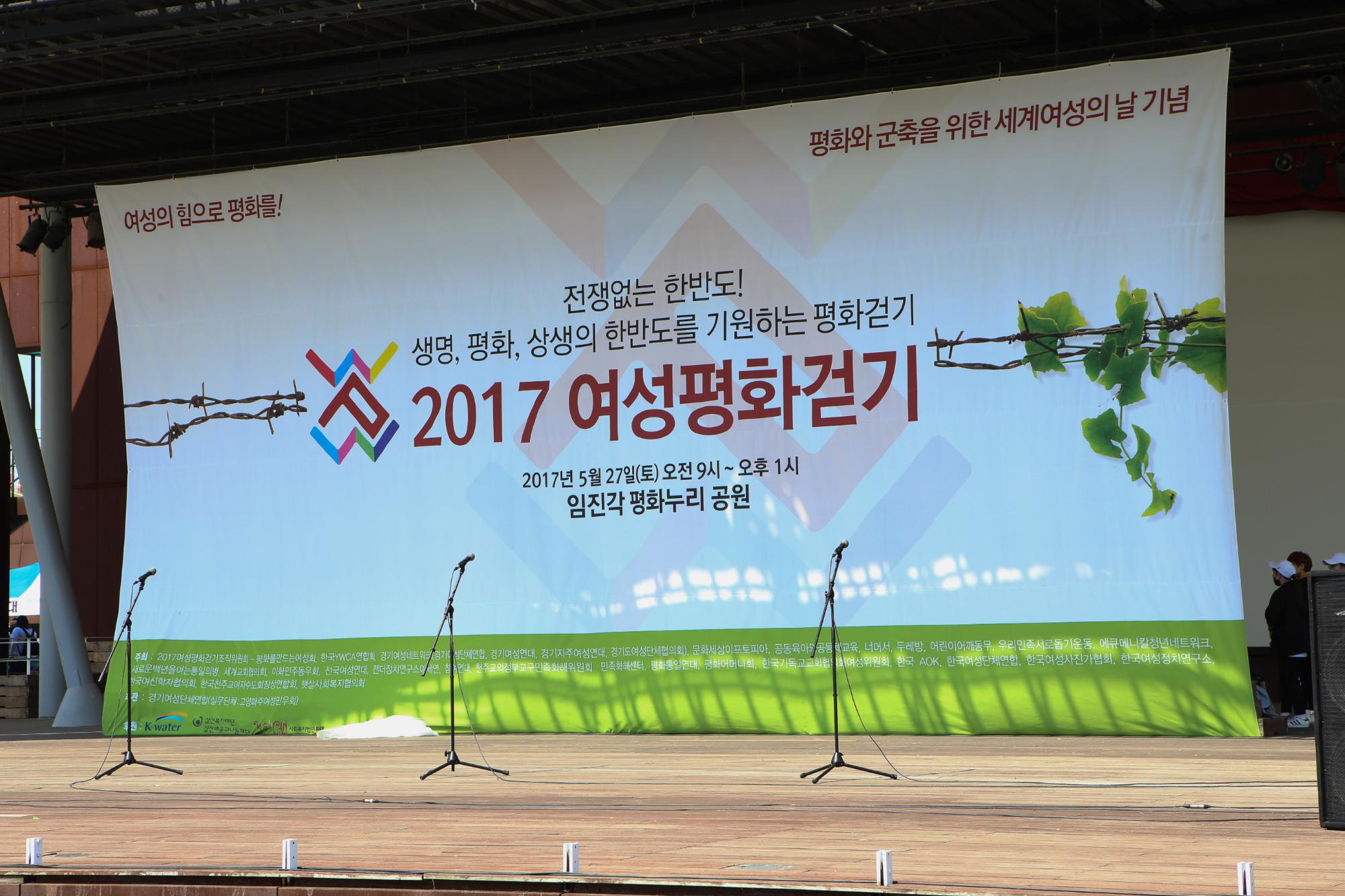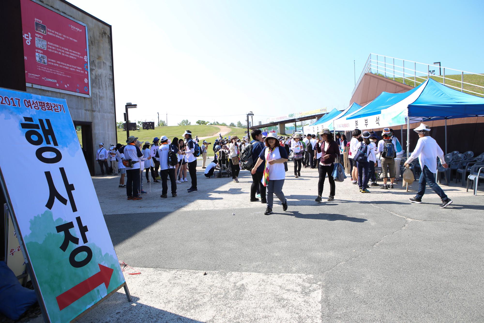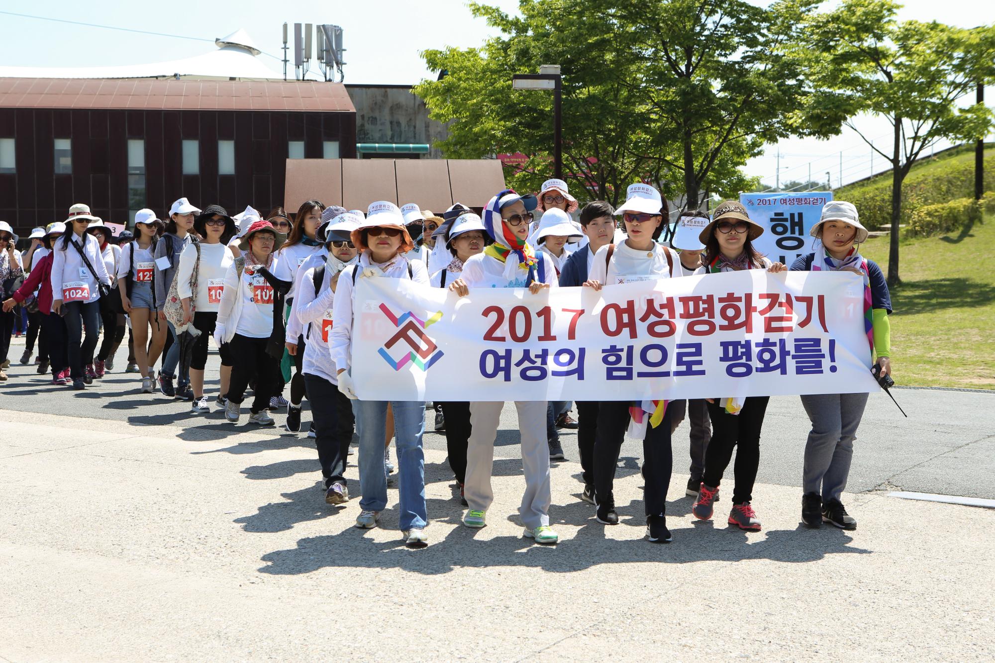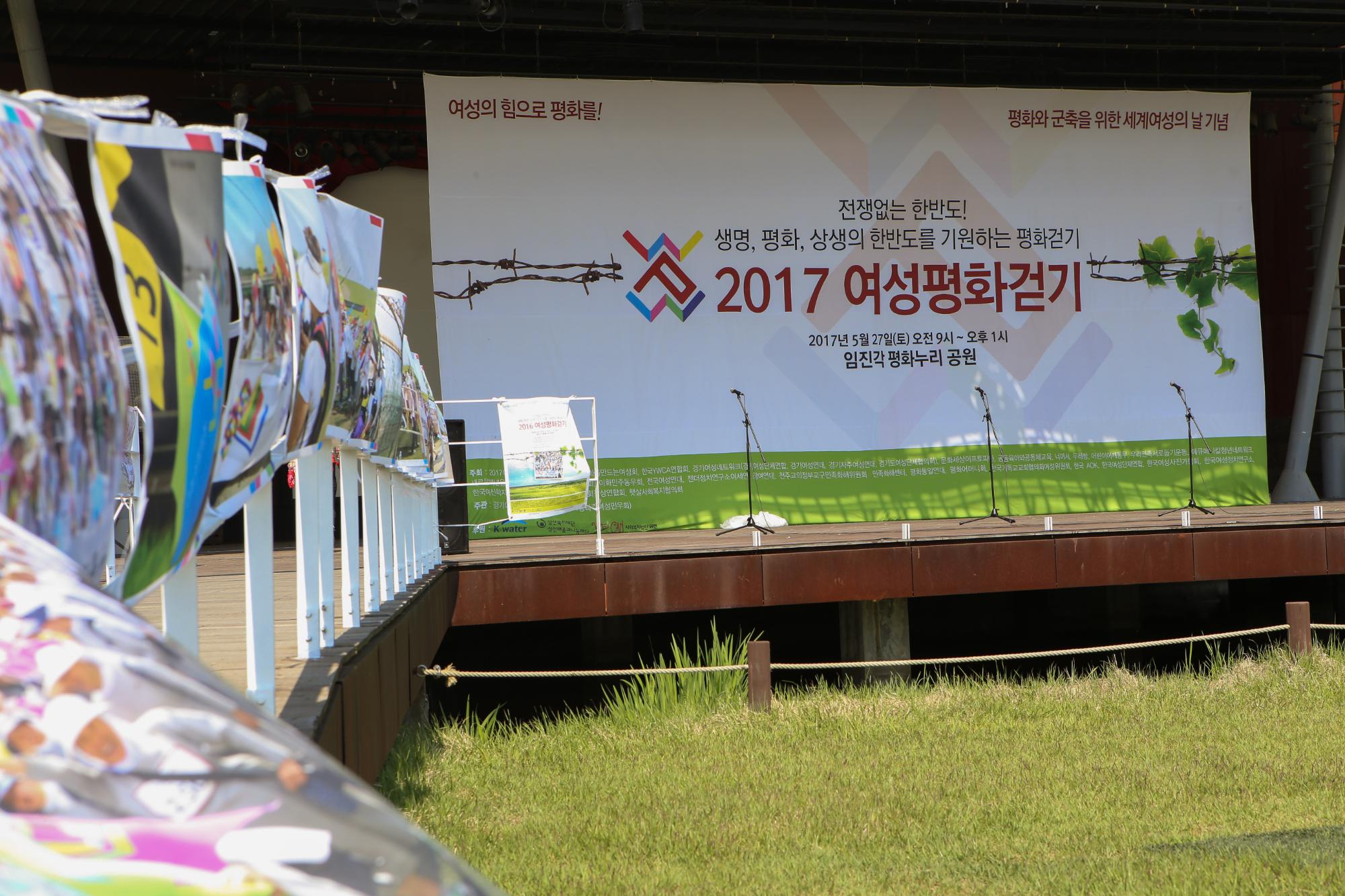 2017년 5월 27일.토요일. 오전 9시부터 오후 1시까지 임진각 평화누리공원 일대에서 펼쳐진 2017여성평화걷기 관련 사진들. 행사장 안내판과 참가자들의 등록, 철조망을 배경으로 걷기, 행사무대의 모습 등이 담겨 있다.