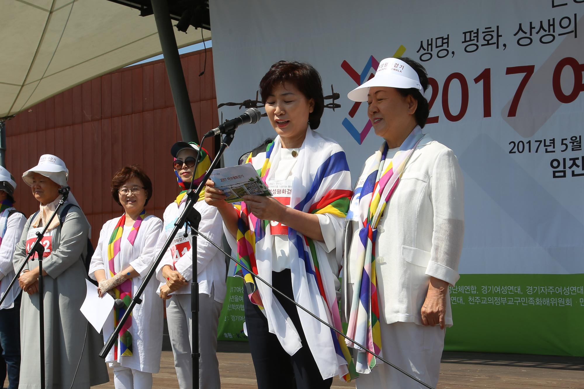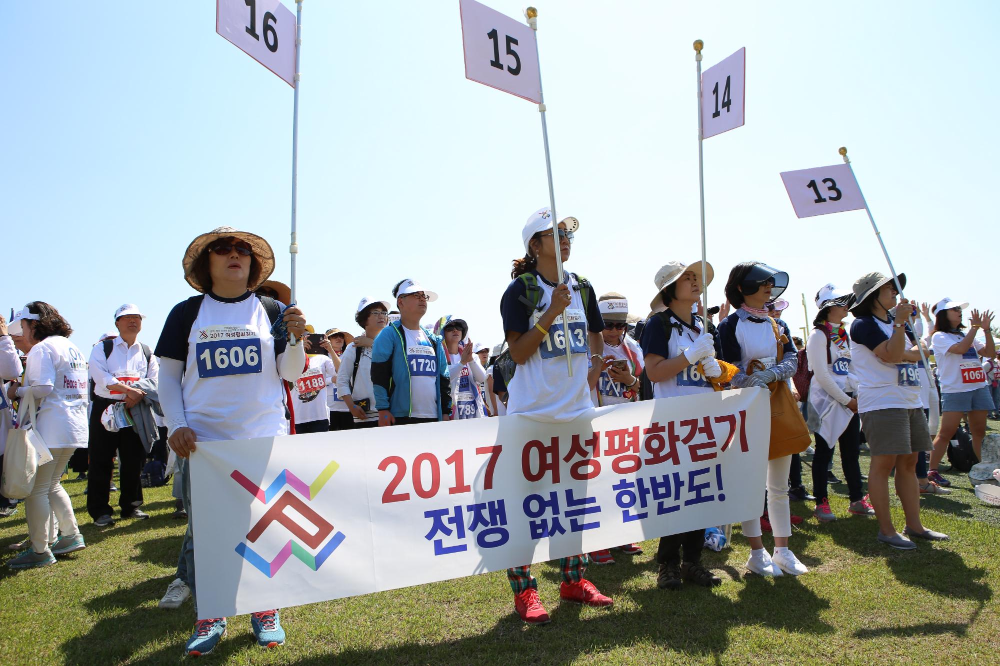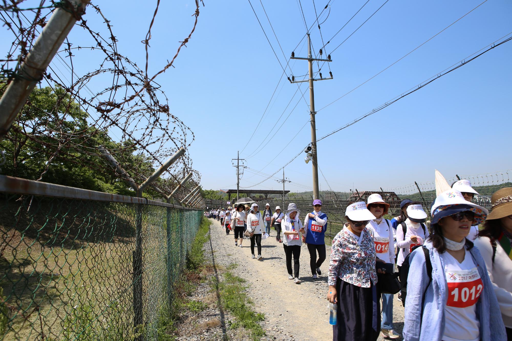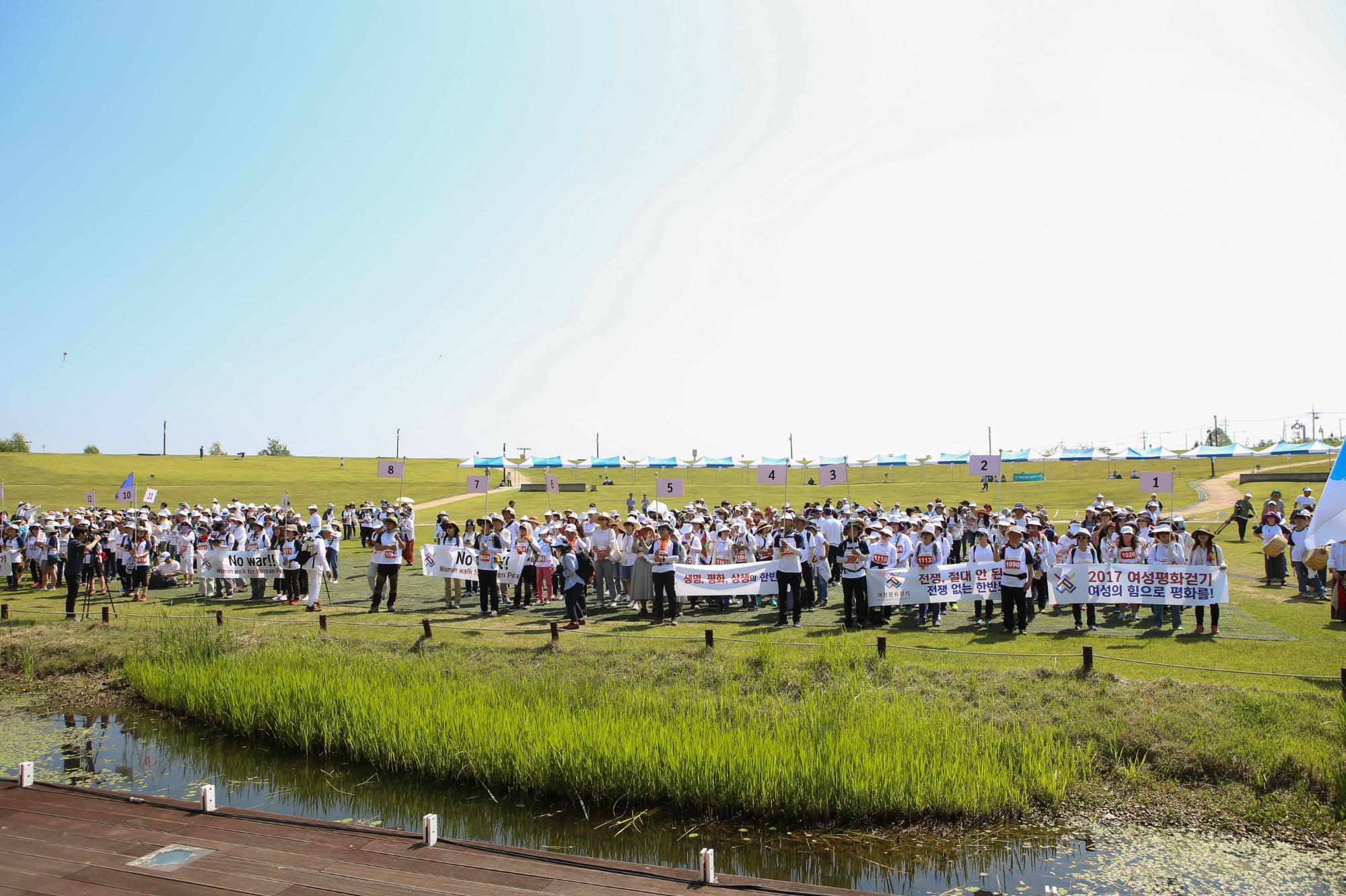 2017년 5월 27일.토요일. 오전 9시부터 오후 1시까지 임진각 평화누리공원 일대에서 펼쳐진 2017여성평화걷기 관련 사진들. 행사장 안내판과 참가자들의 등록, 철조망을 배경으로 걷기, 행사무대의 모습 등이 담겨 있다.