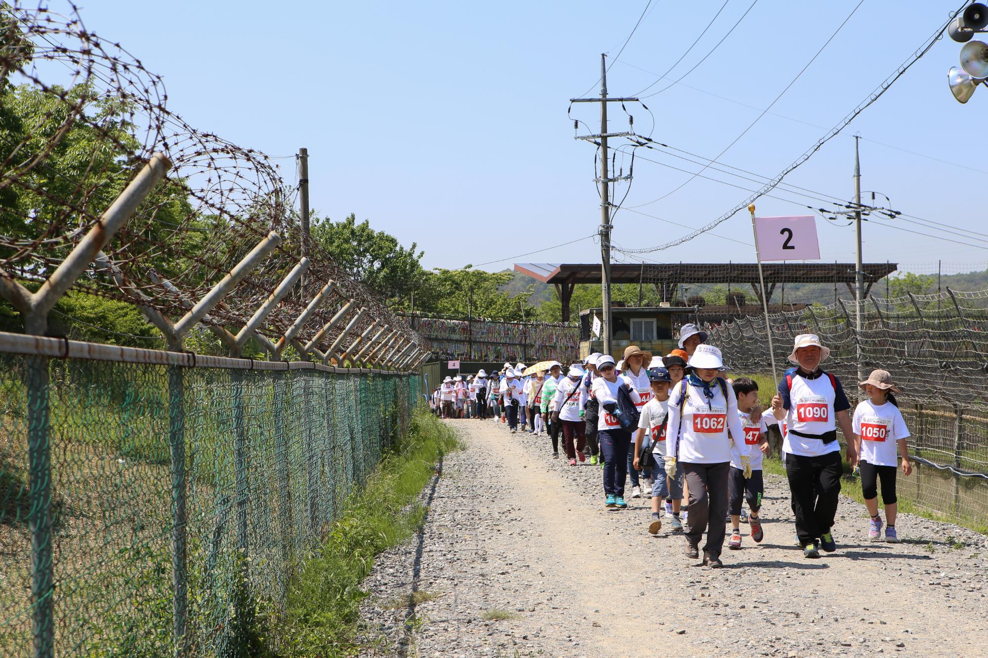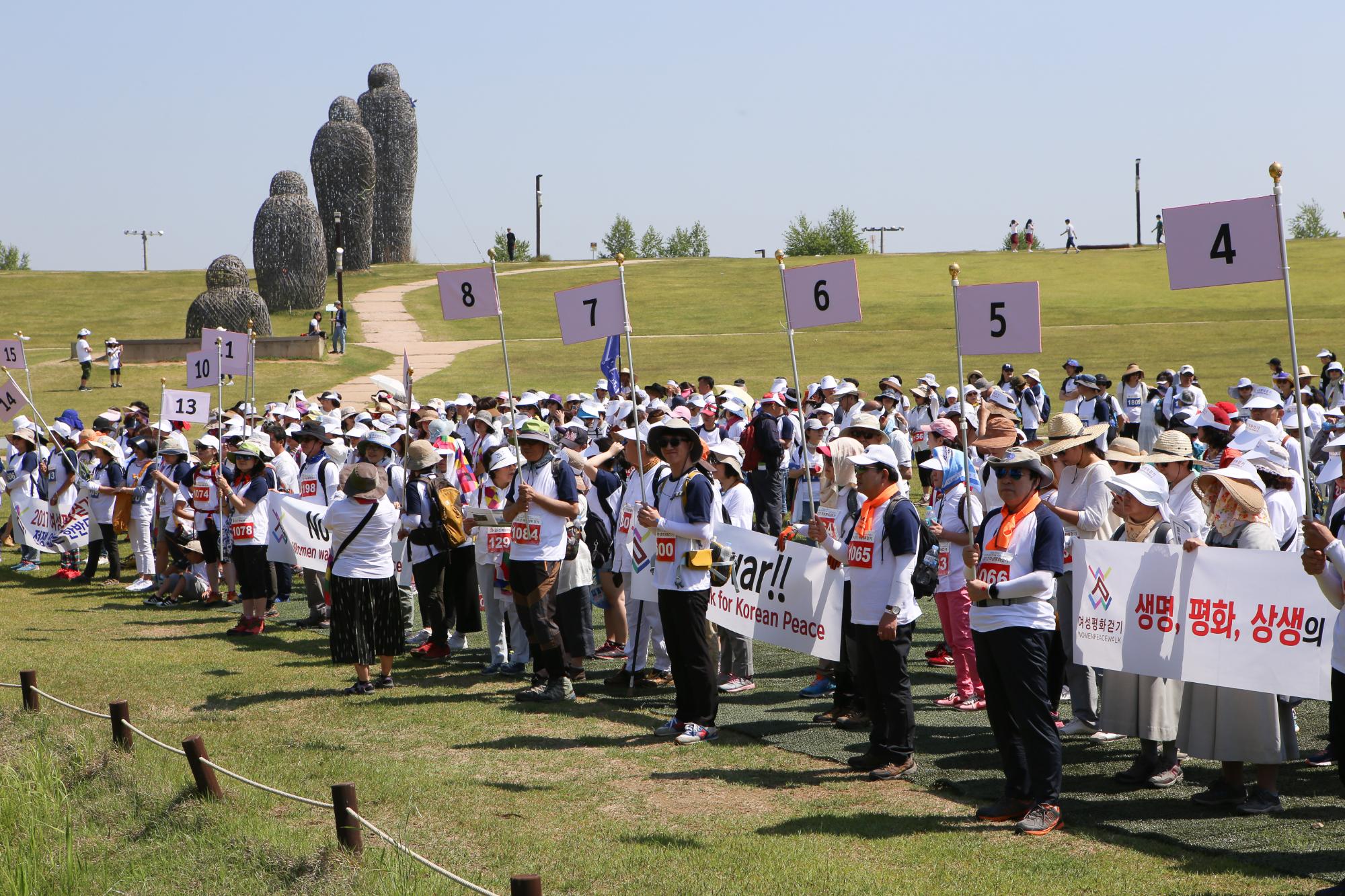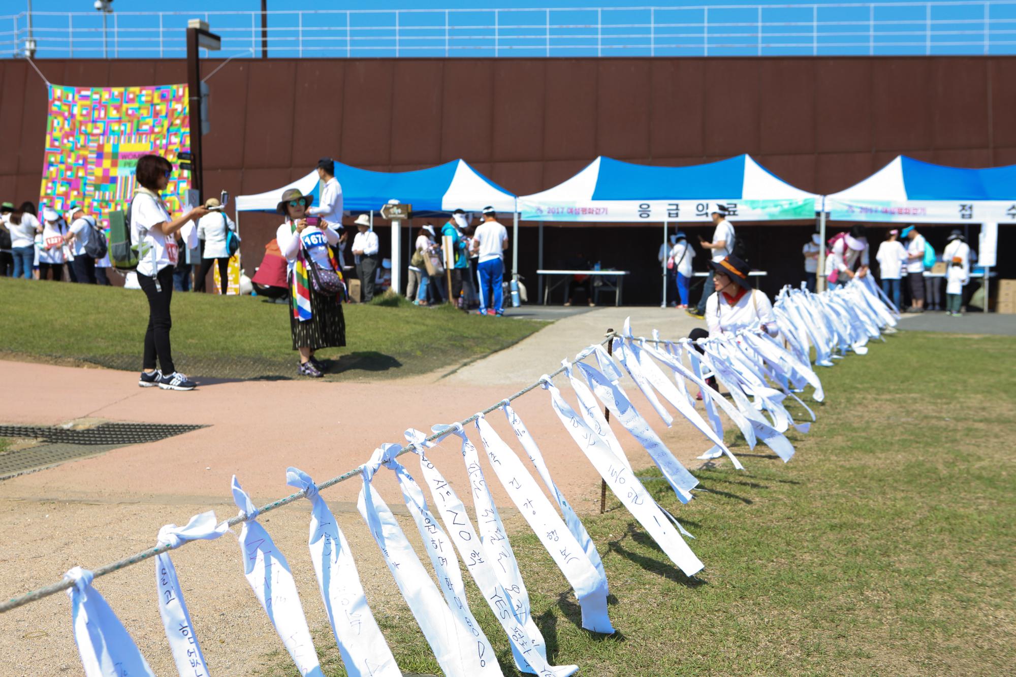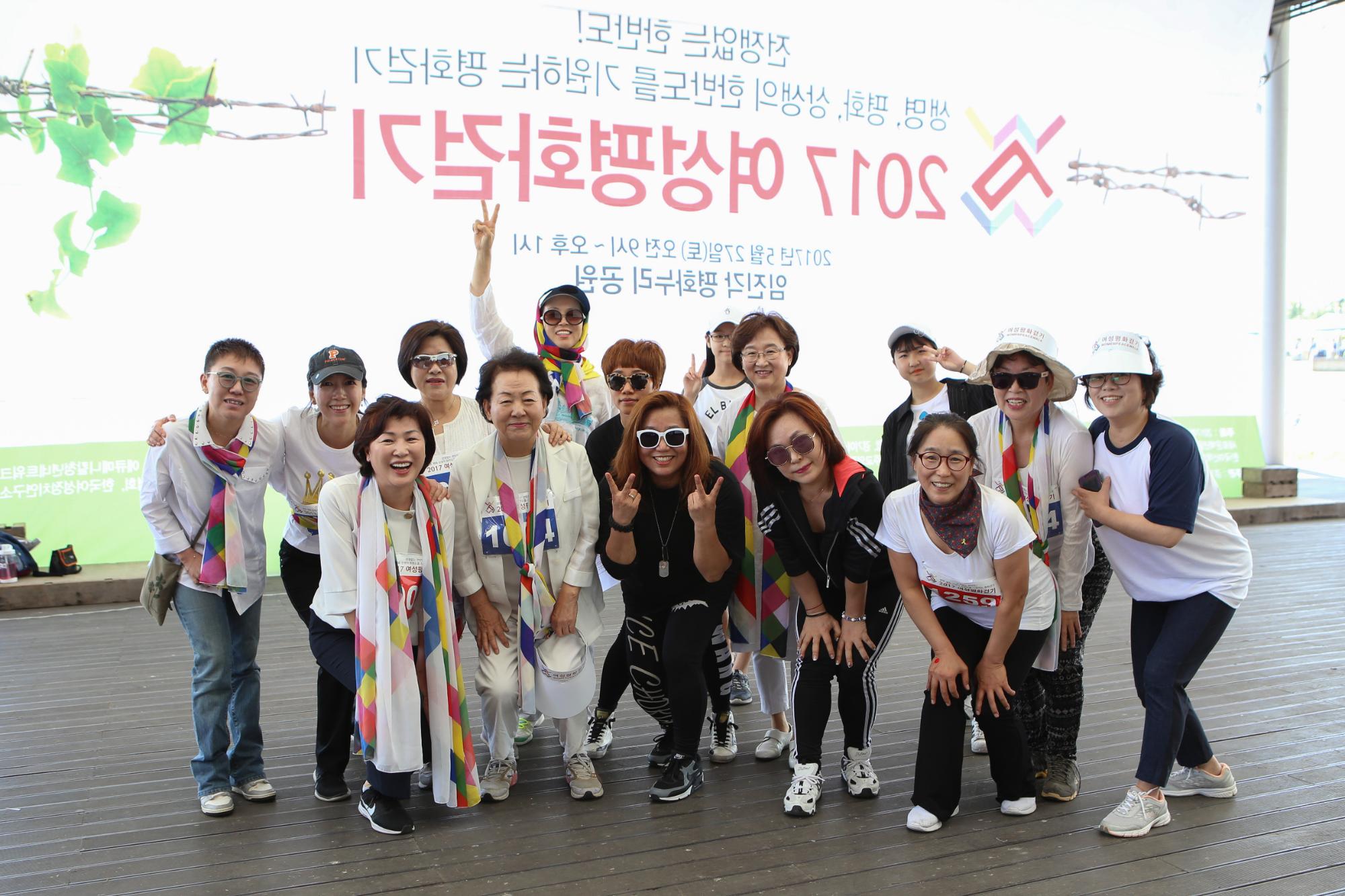 2017년 5월 27일.토요일. 오전 9시부터 오후 1시까지 임진각 평화누리공원 일대에서 펼쳐진 2017여성평화걷기 관련 사진들. 행사장 안내판과 참가자들의 등록, 철조망을 배경으로 걷기, 행사무대의 모습 등이 담겨 있다.