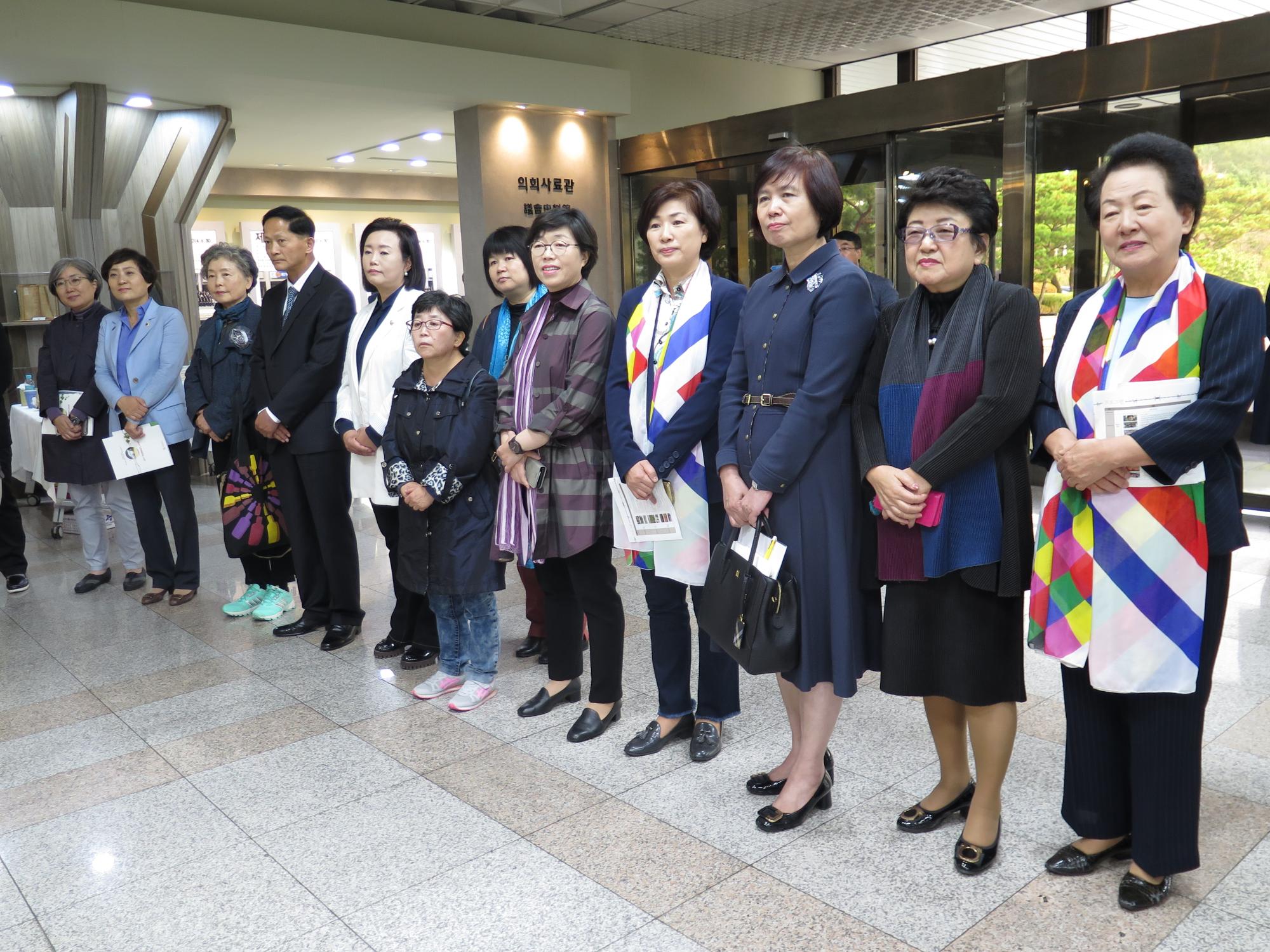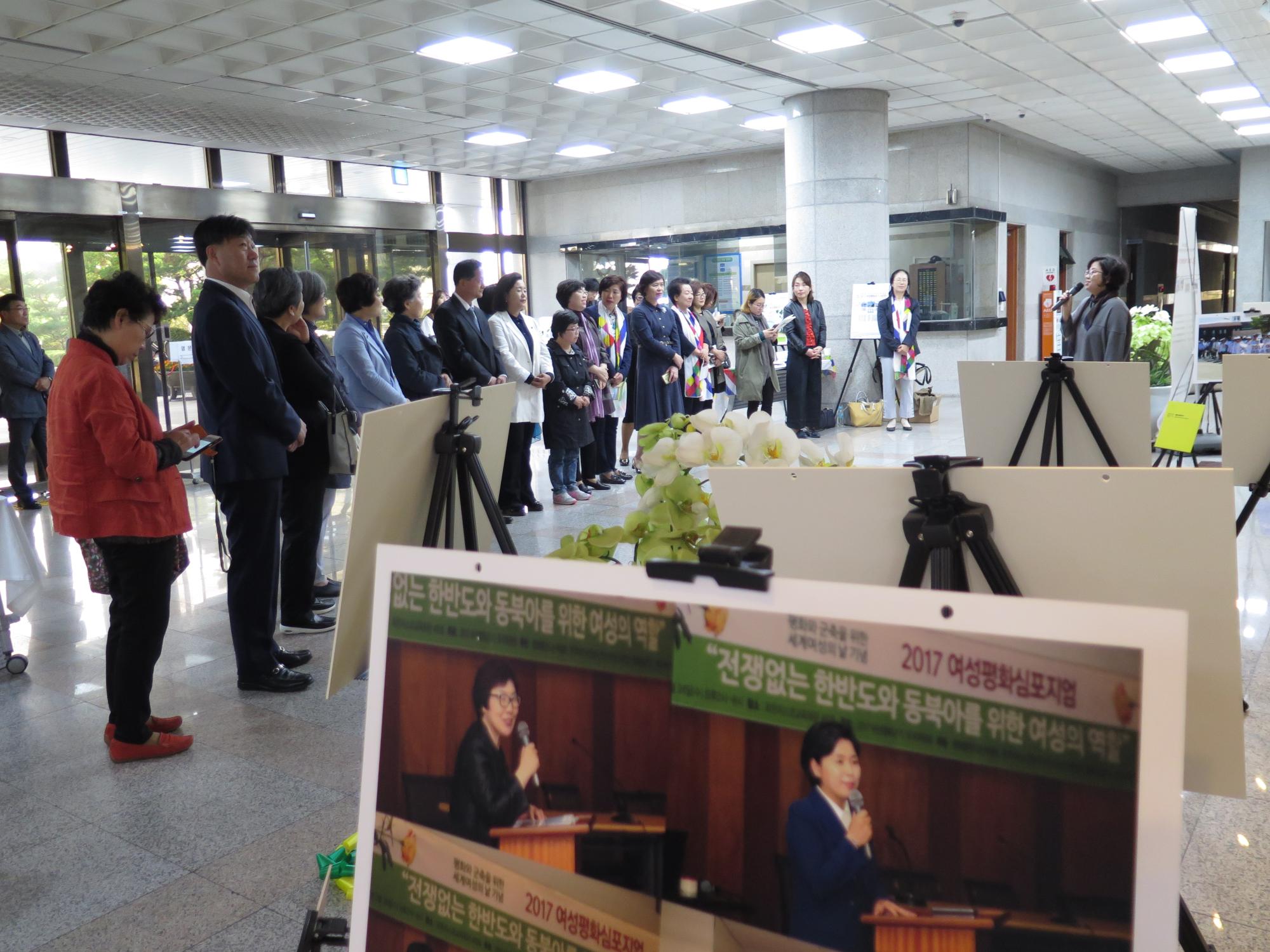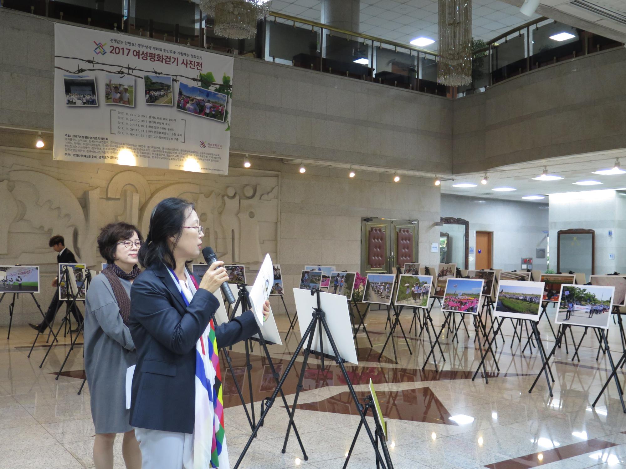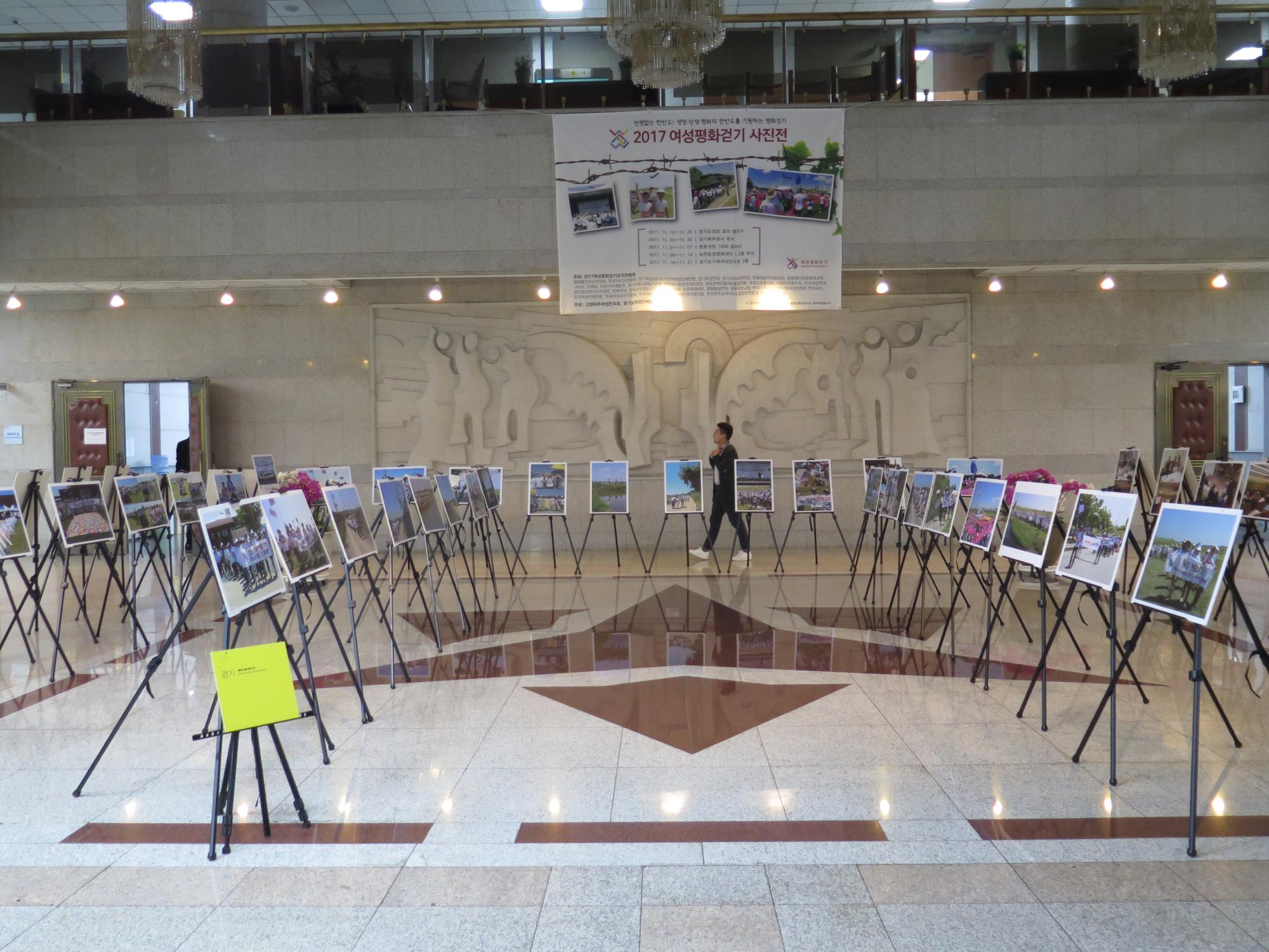2017년 10월 13일~10월 20일 경기도의회 로비 갤러리에서 열린 2017여성평화걷기 사진전의 모습. 참가자들과 일반 시민들의 관람 모습.