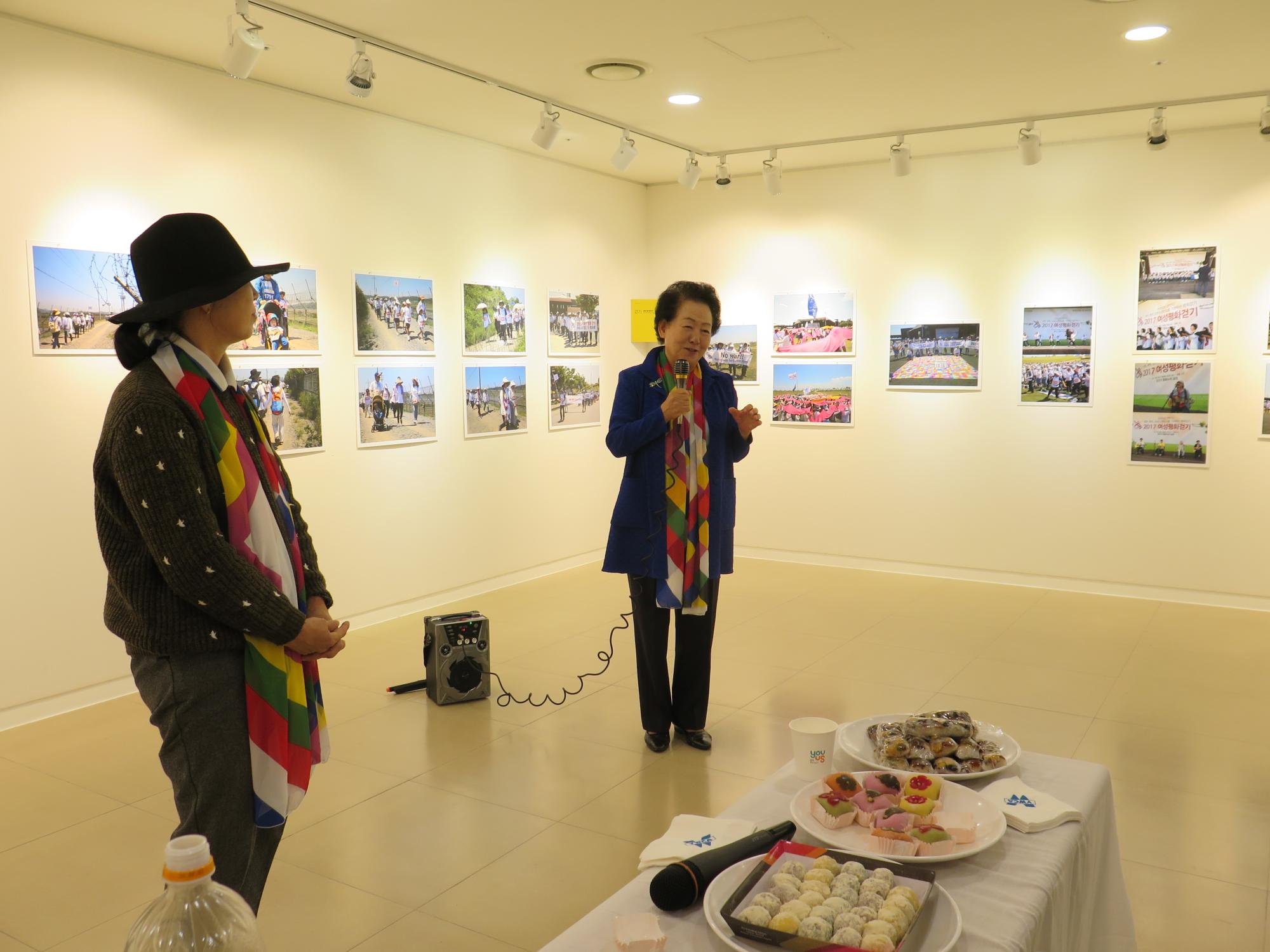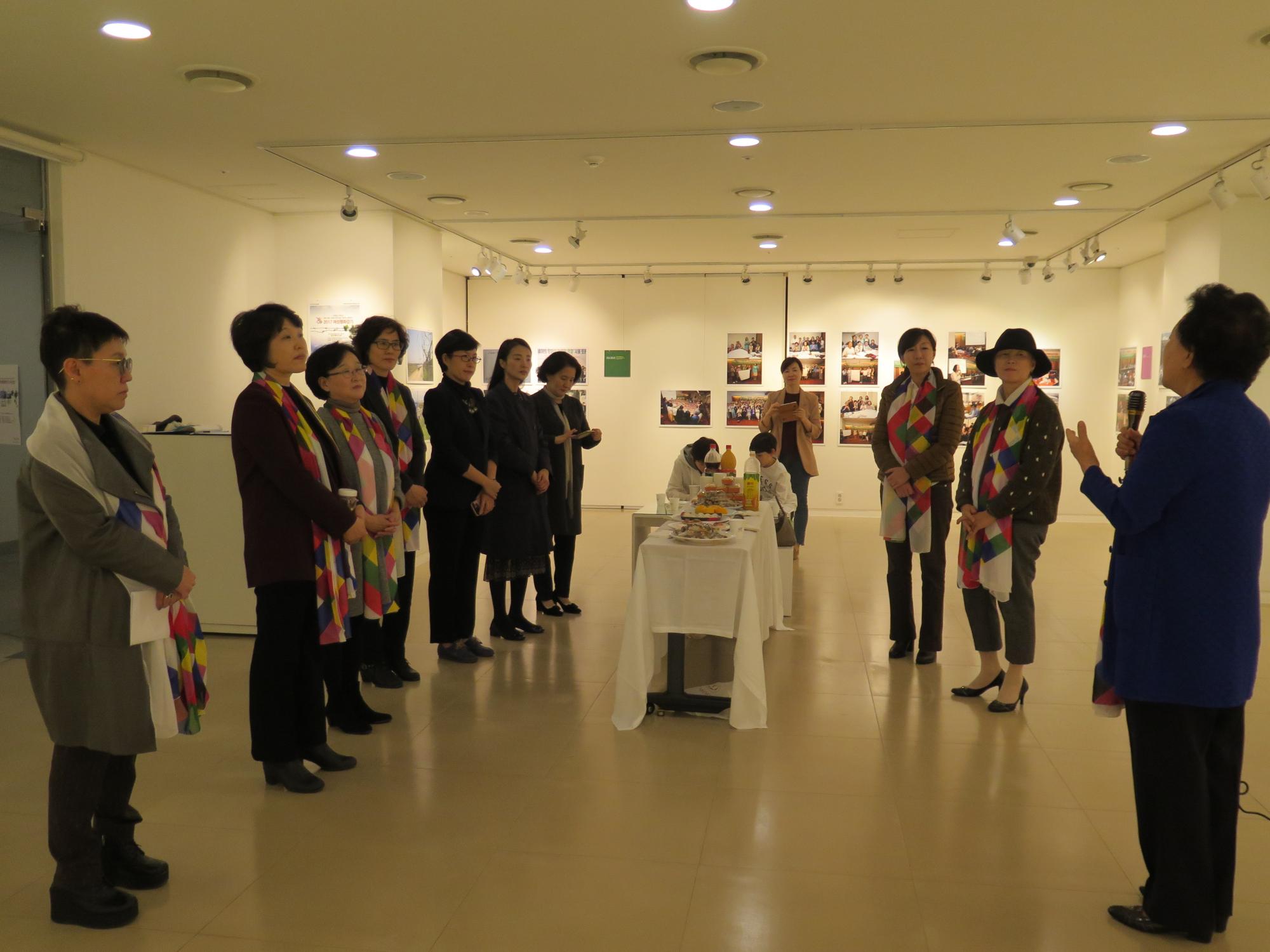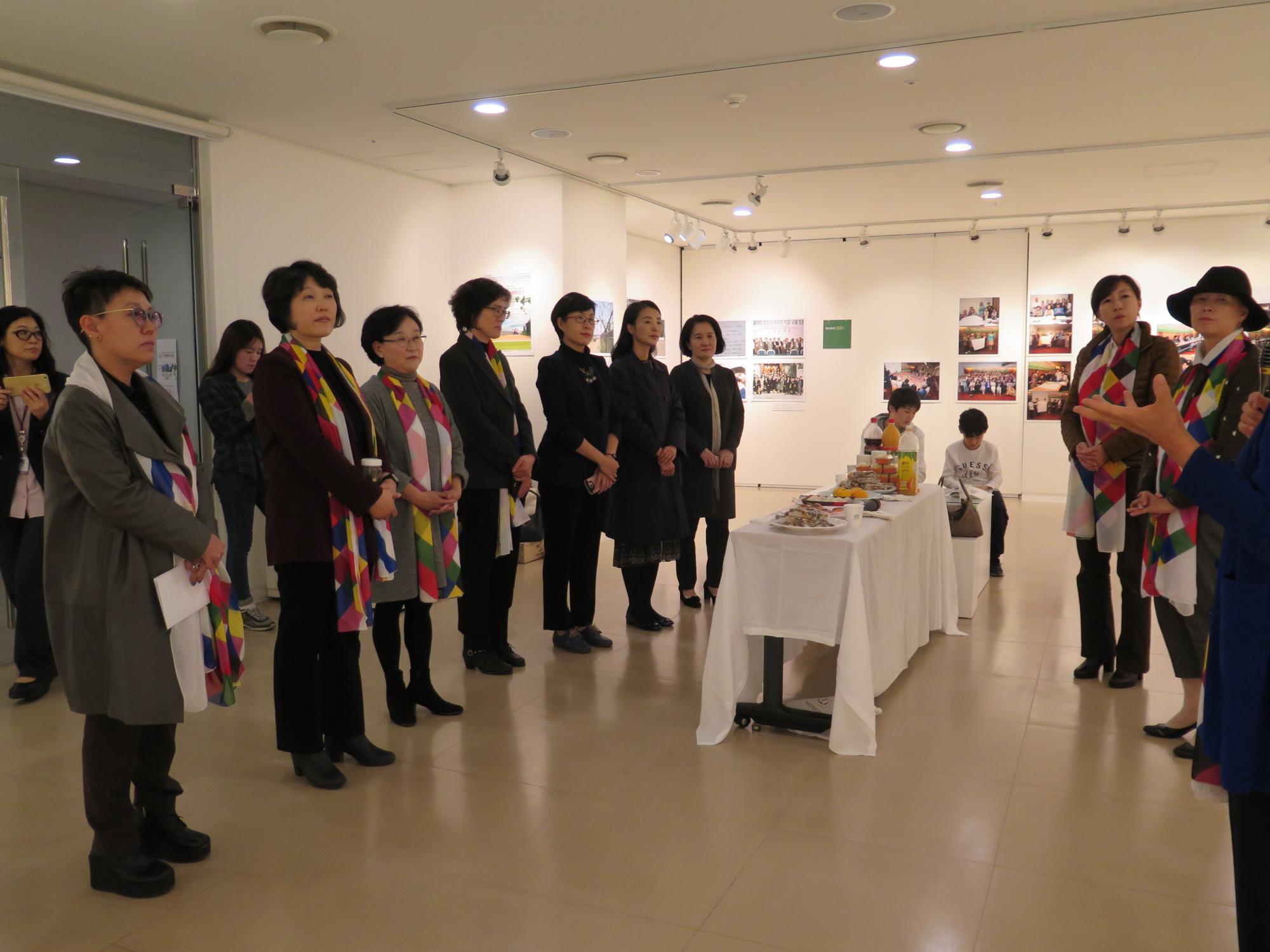 2017년 11월 1일~11월 7일, 명동성당 1898 갤러리에서 열린 207여성평화걷기 사진전 오프닝에서 참가자들이 간단한 기념식을 가진 후 기념사진을 찍고 있다.