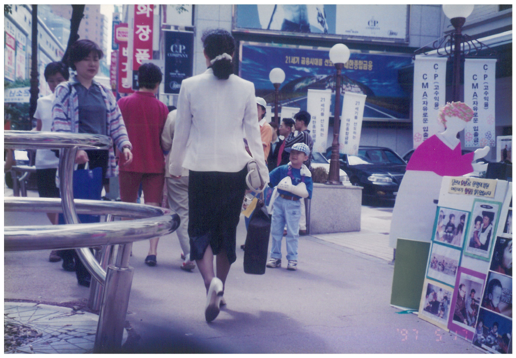 1997년 5월 24일. 즁부경찰서 앞에서 본 회 이름으로 개최된 북한동포 돕기 거리모금 행사 사진.