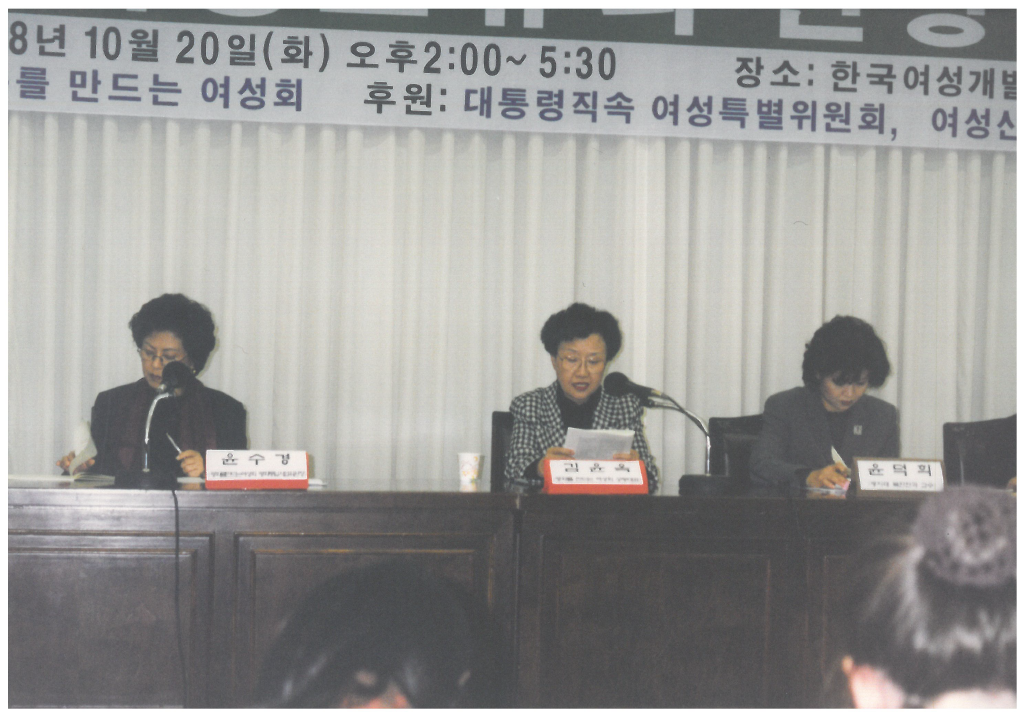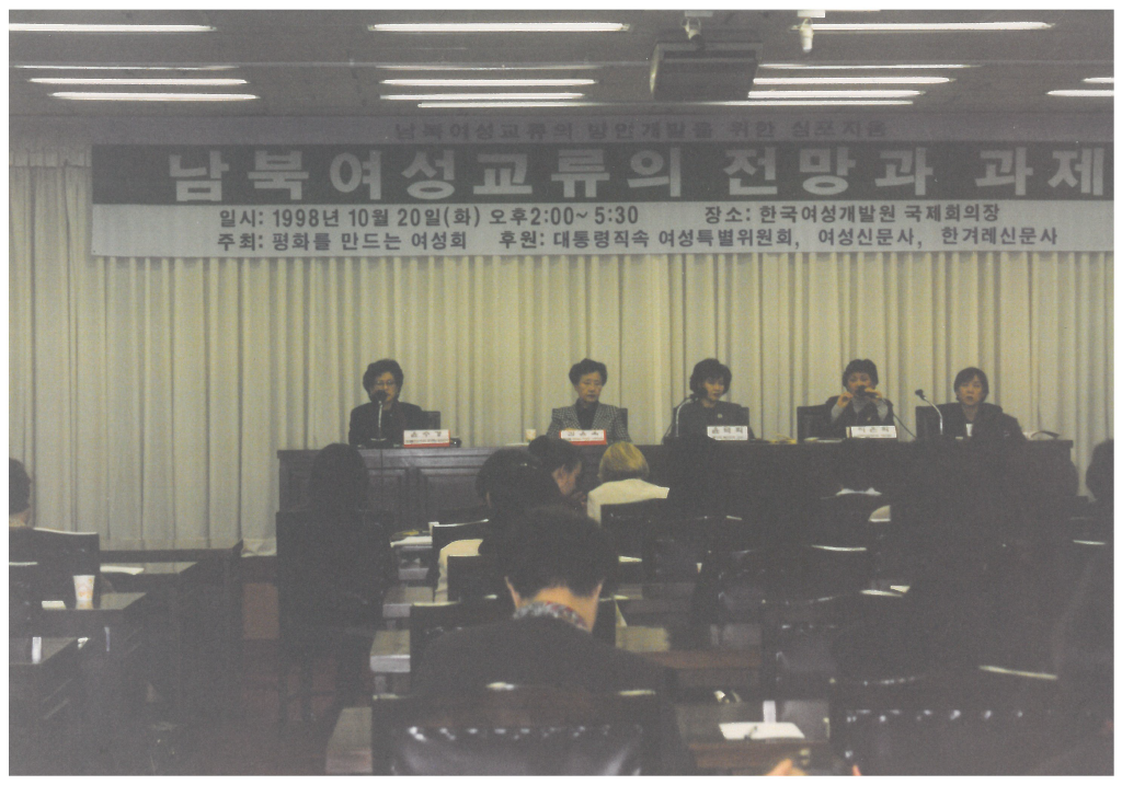 1998년 10월 20일(화) 14:00~17:30, 한국여성개발원 국제회의장에서 1998 남북여성교류의 방안개발을 위한 심포지움, '남북여성교류의 전망과 과제'가 개최되었다.