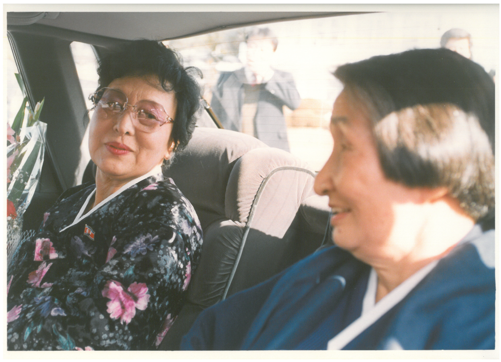 1991년부터 1992년, 남북여성들은 판문점을 넘나들면서 한반도의 평화를 위해 분단장벽을 넘는 역사의 대장정을 시작했다. 사진은 1991년 11월 25일(월), 북측 대표단 려연구(여운형의 딸)를 맞이하는 남측 대표단(공동대표) 이효재.