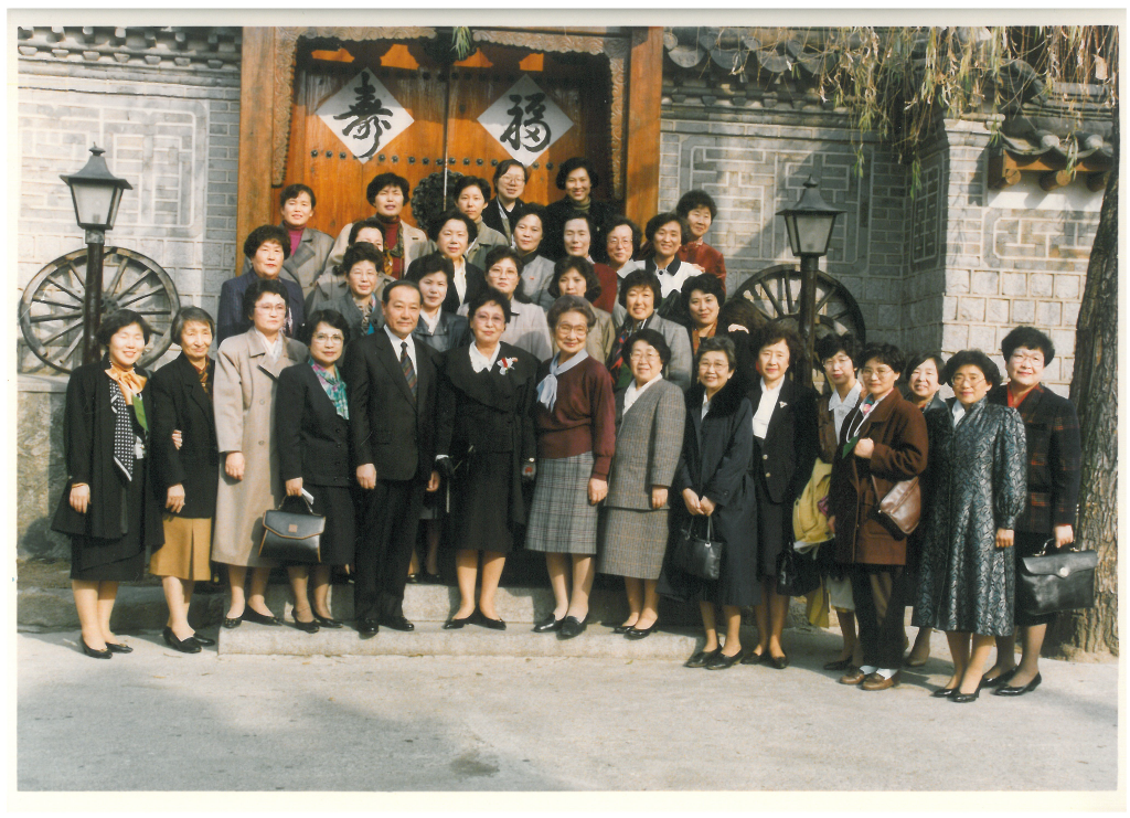1991년부터 1992년, 남북여성들은 판문점을 넘나들면서 한반도의 평화를 위해 분단장벽을 넘는 역사의 대장정을 시작했다. 사진은 1991년 11월 28일(목), 삼청각 식당에서 남측 대표단과 북측 대표단, 일본측 대표단이 함께 찍은 기념사진.